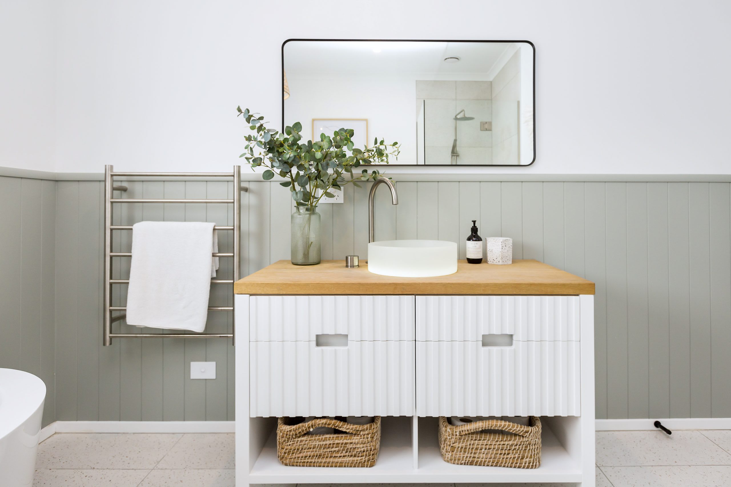 Ultimately, the wall panelling helps bridge modern simplicity with relaxed, coastal charm – bringing both personality and polish to the overall design.