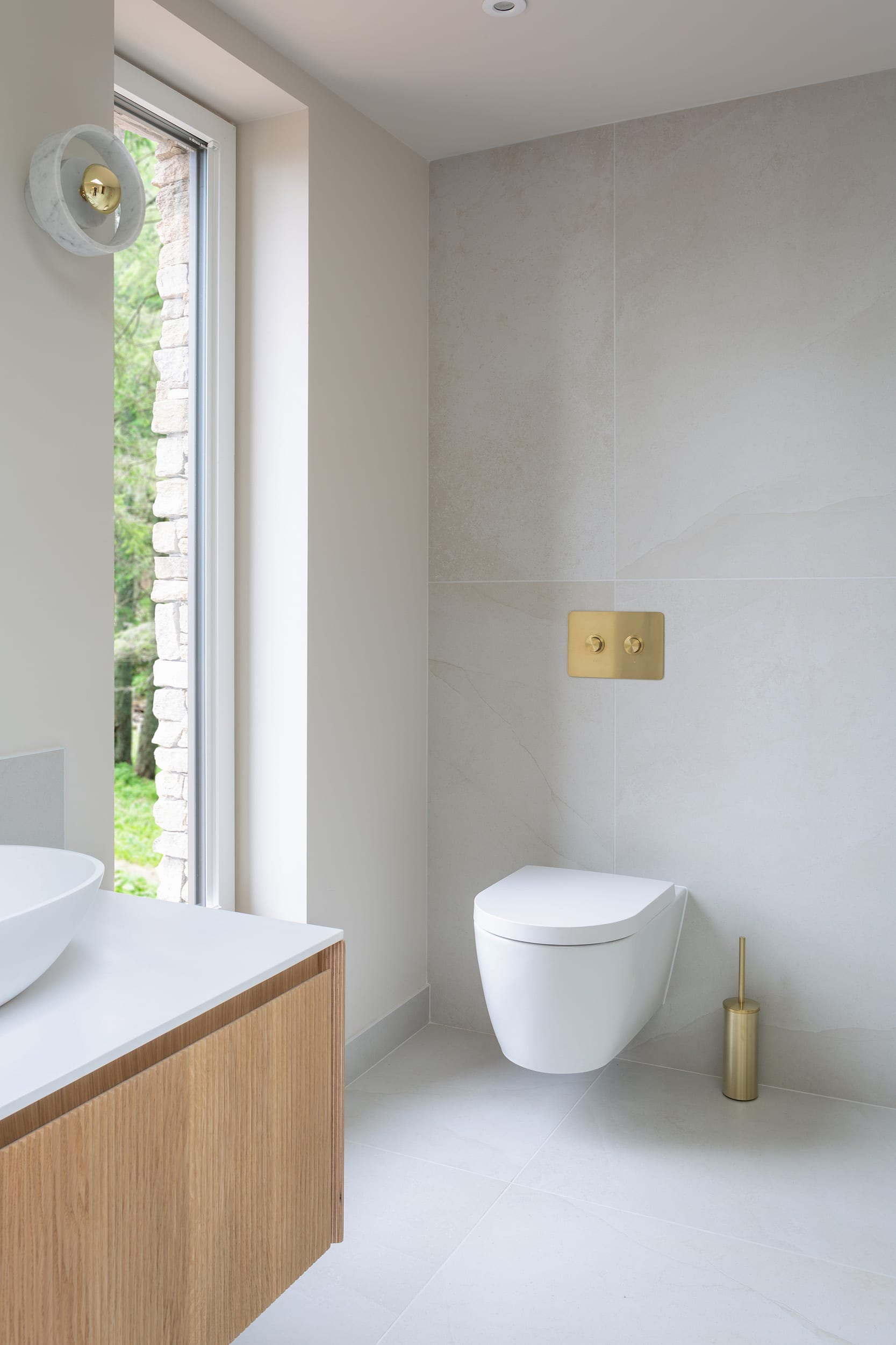 Using 1200x1200mm light grey porcelain tiles for the walls and floor introduced further matt natural tones.