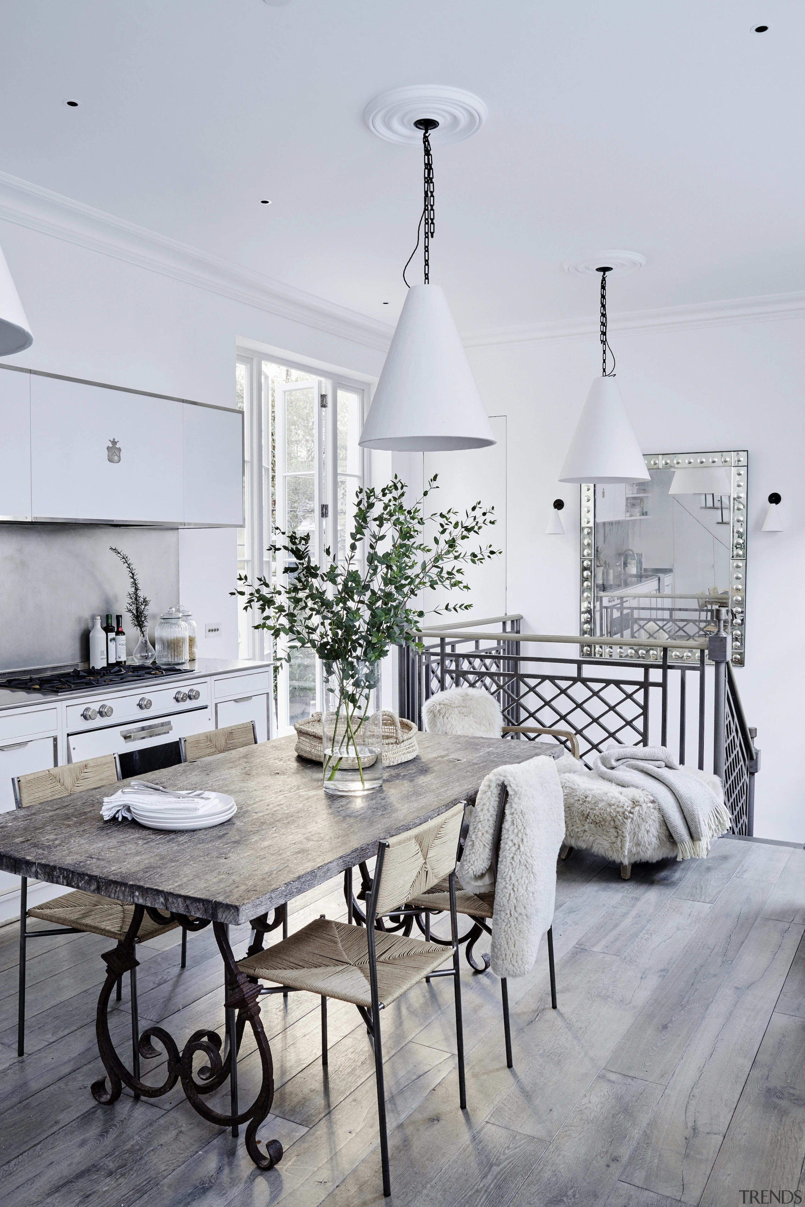 Meanwhile, the wooden dining table and rush seating, not to mention the white oiled oak plank flooring, are features that subtly bring warmth and a sense of relaxed rusticity.