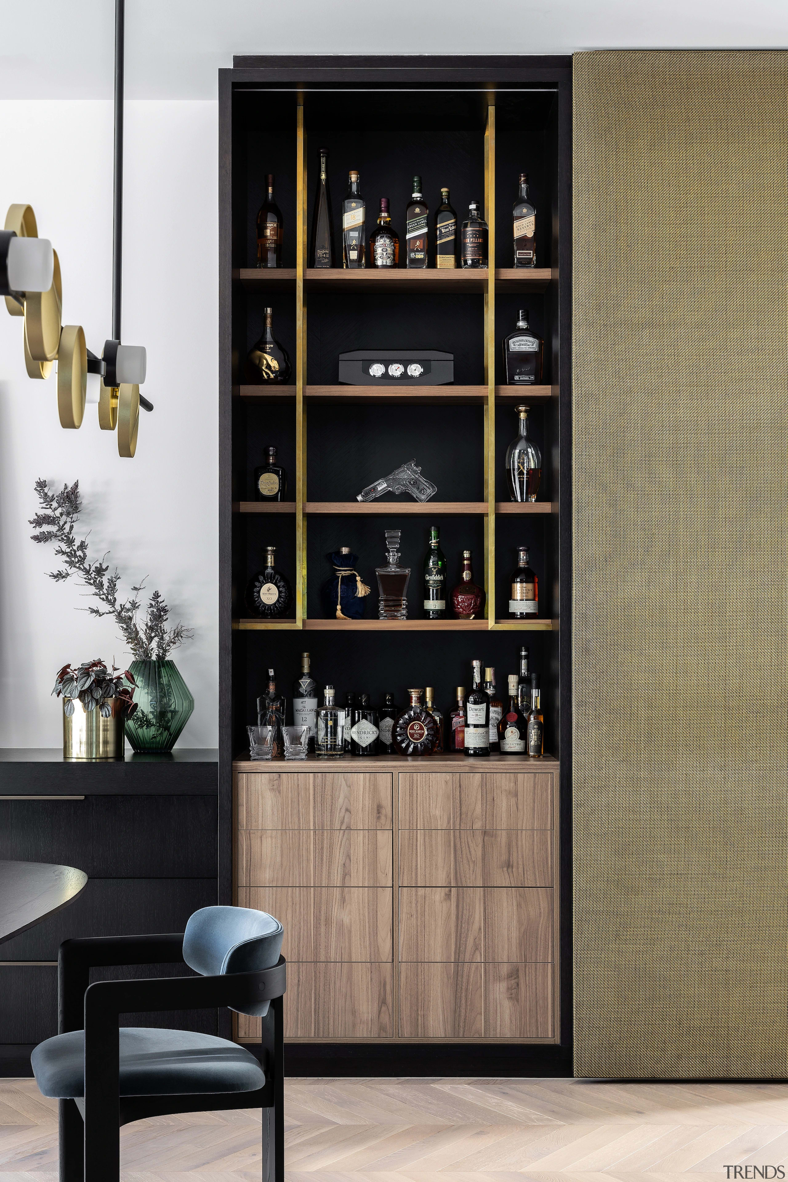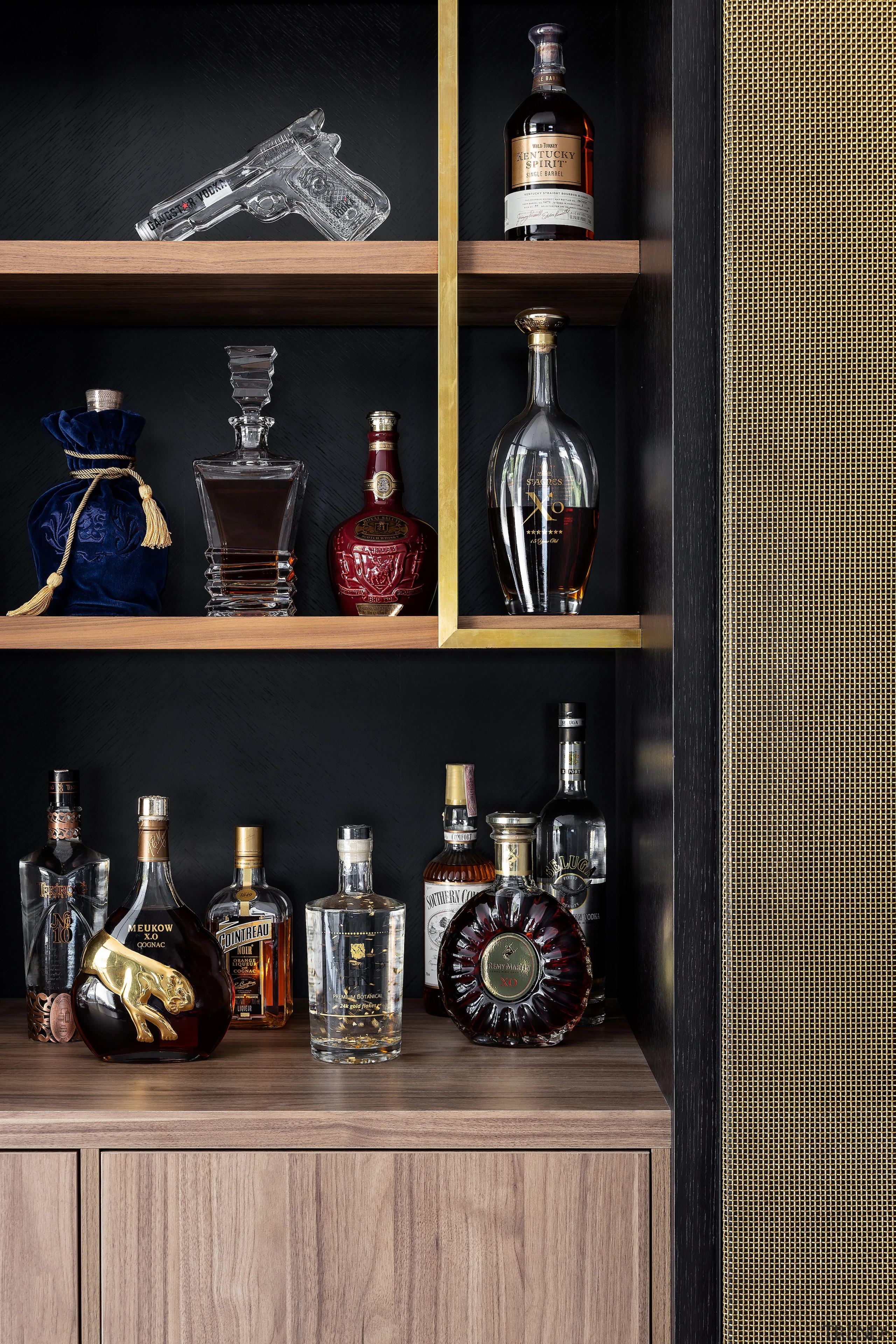 - Cocktail bar – slide open the full height brass mesh screen to reveal the timber interior filled with the evening’s potential creations