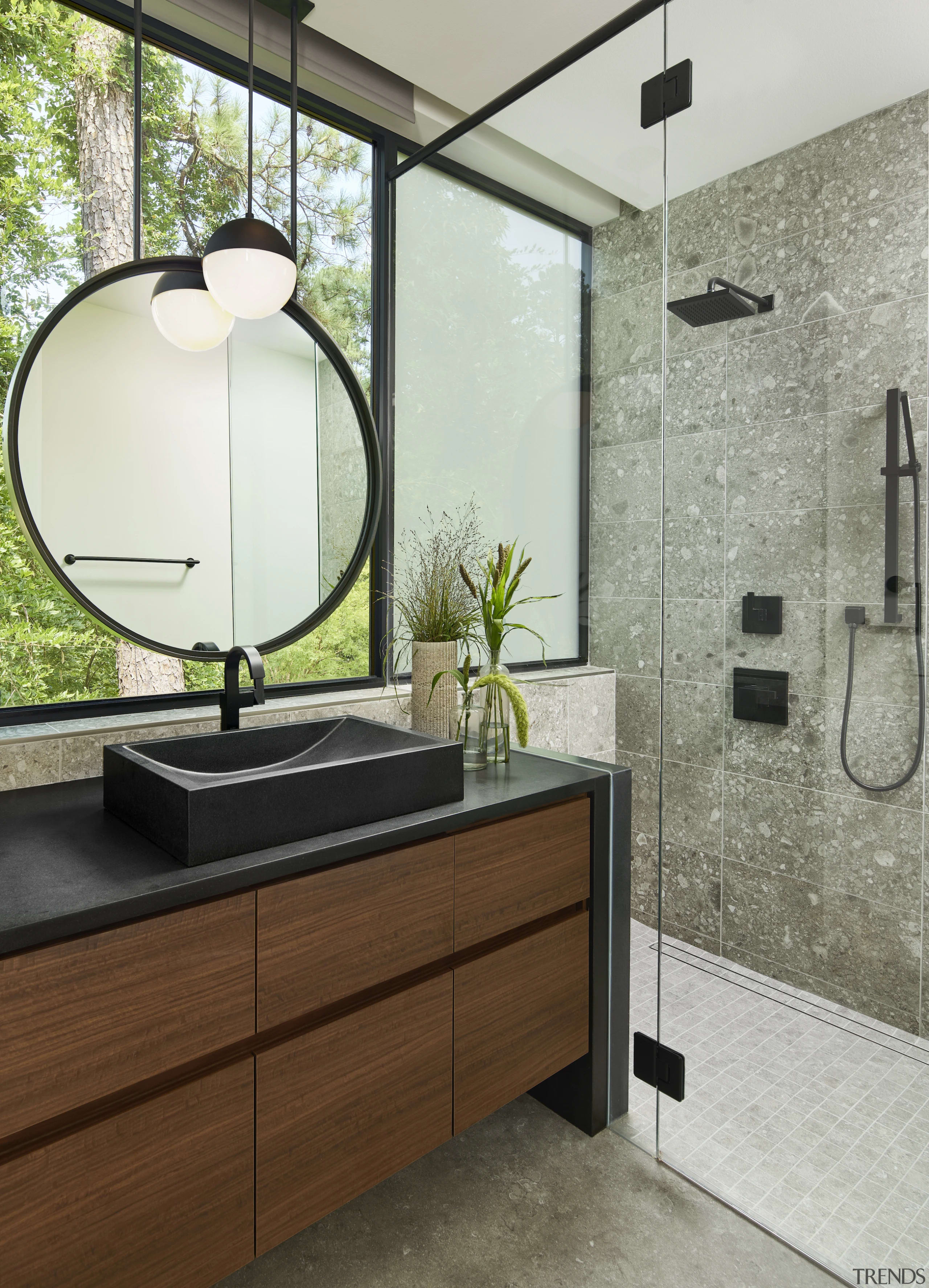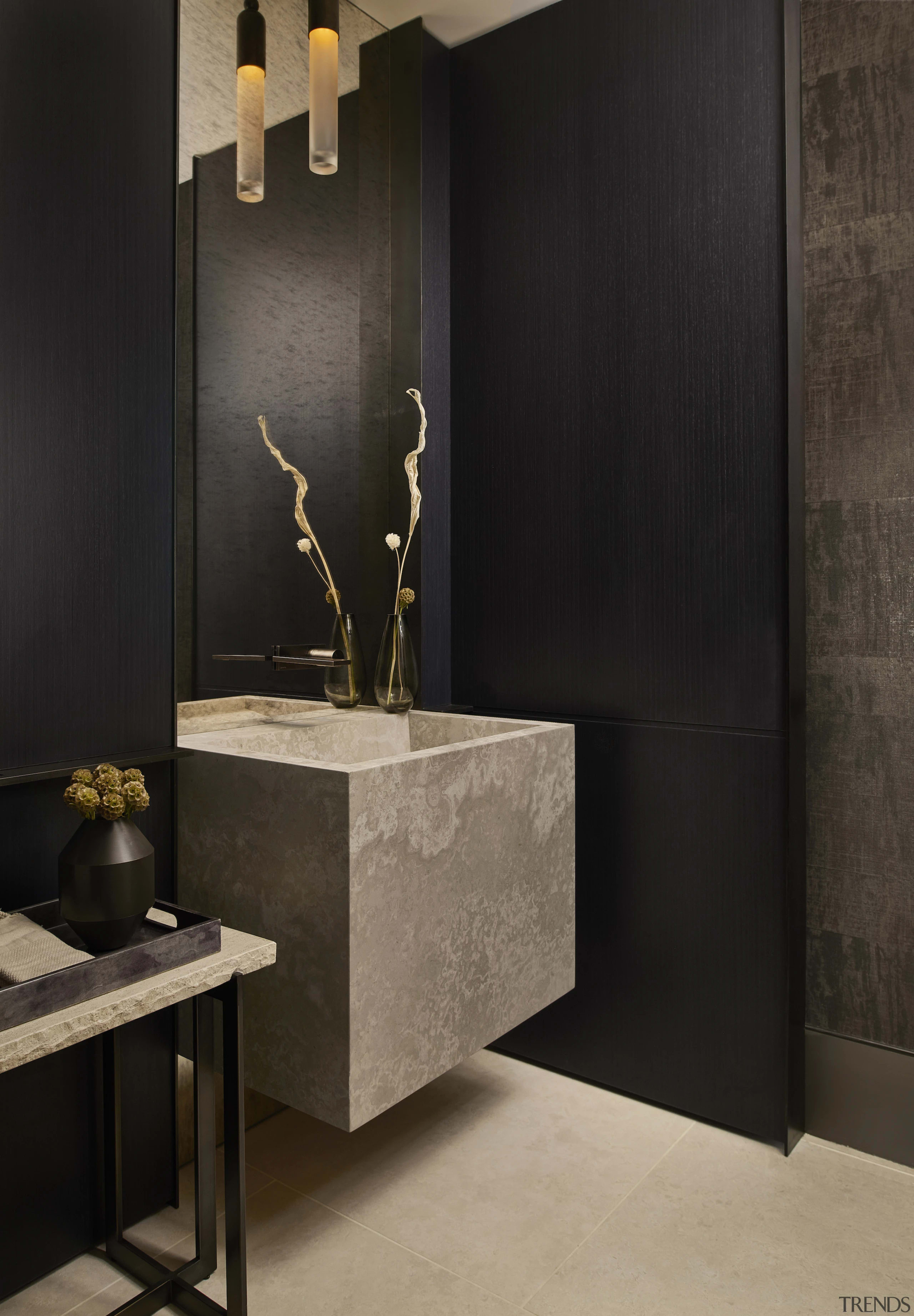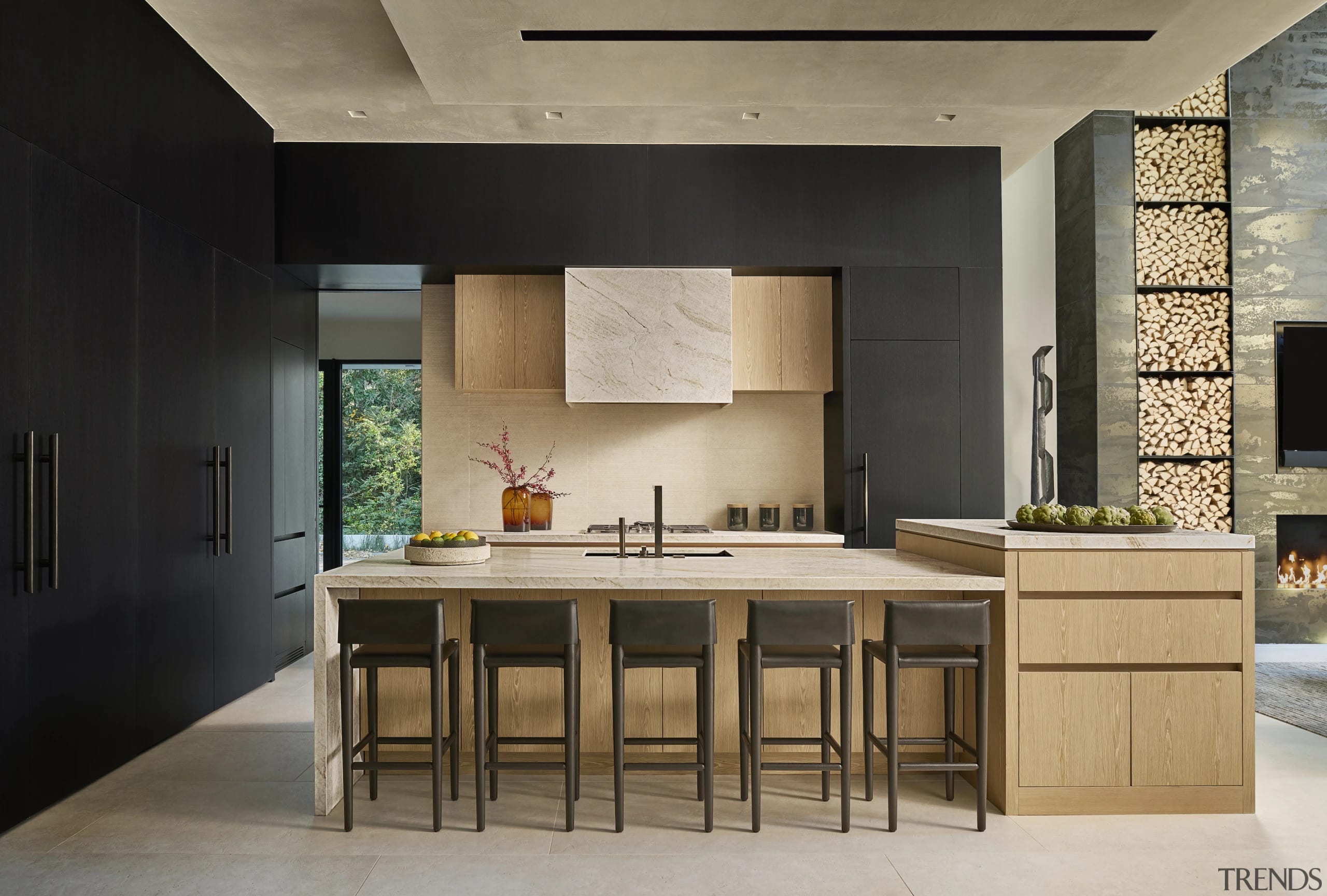 Both the limestone and charred wood surfaces add a lot of warmth and richness to the space.