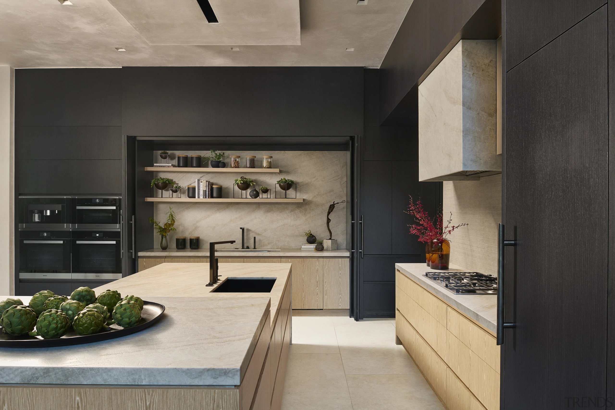 The lighter wood finishes out around 2.7m off the floor, which really helps the kitchen feel more approachable and inviting.