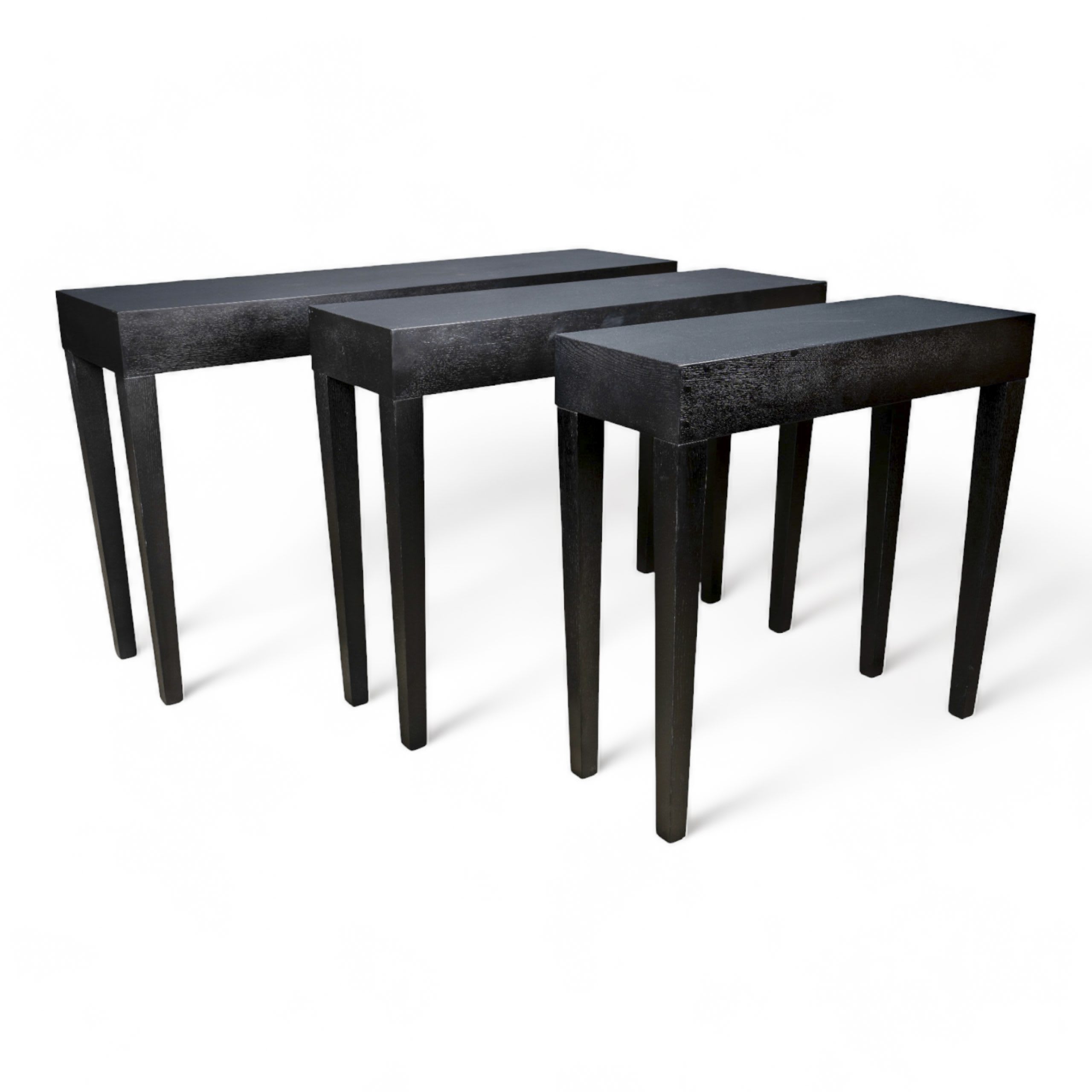 Designed with minimalist contemporary in mind, this modern console table will be a wonderful addition to your hall or entrance space. Two colour options of either Ash wood veneer or white high gloss covered MDF. Available in 3 different lengths. W1300 D350 H765 (11kg) W1000 D300 H765 (9kg) W800 D300 H765 (7kg)