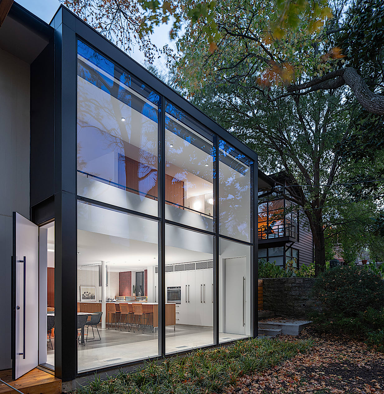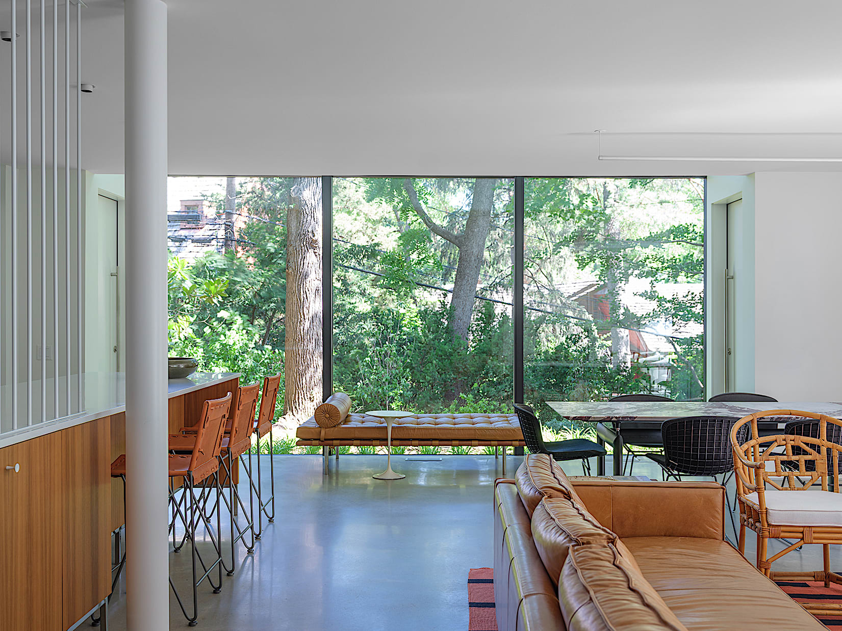 A 91cm by 71cm addition has been added to unify the rear elevation of the house and provide a contemporary wall of glass to the wooded rear yard.