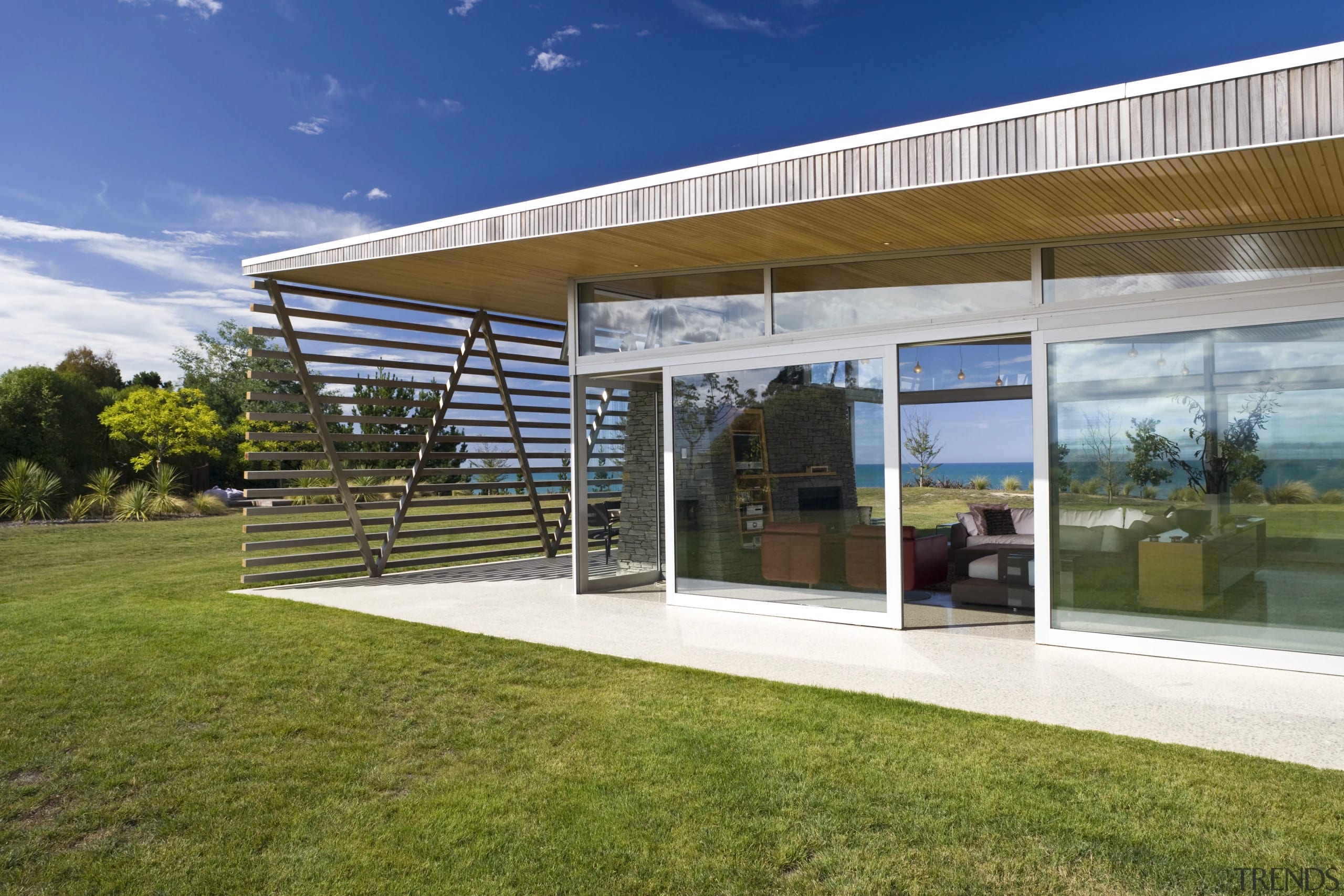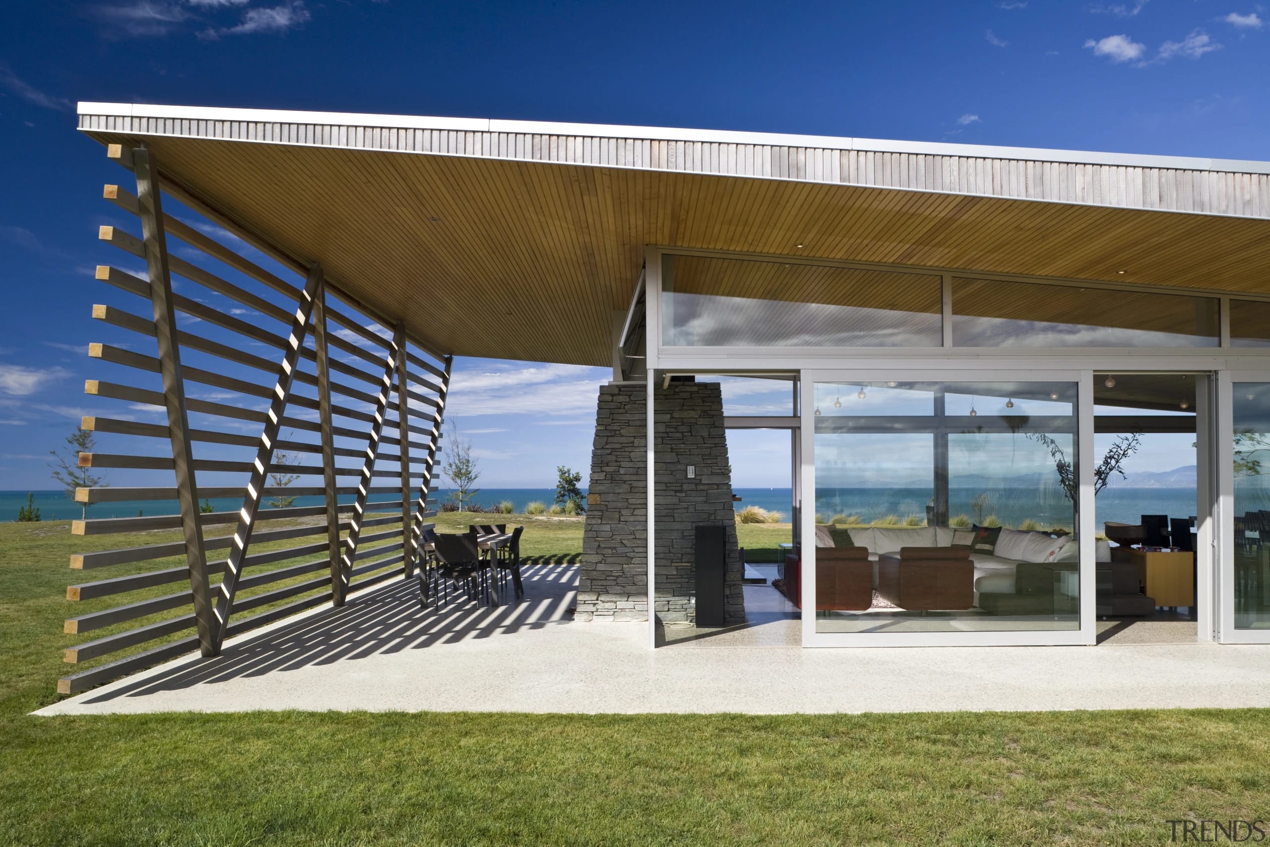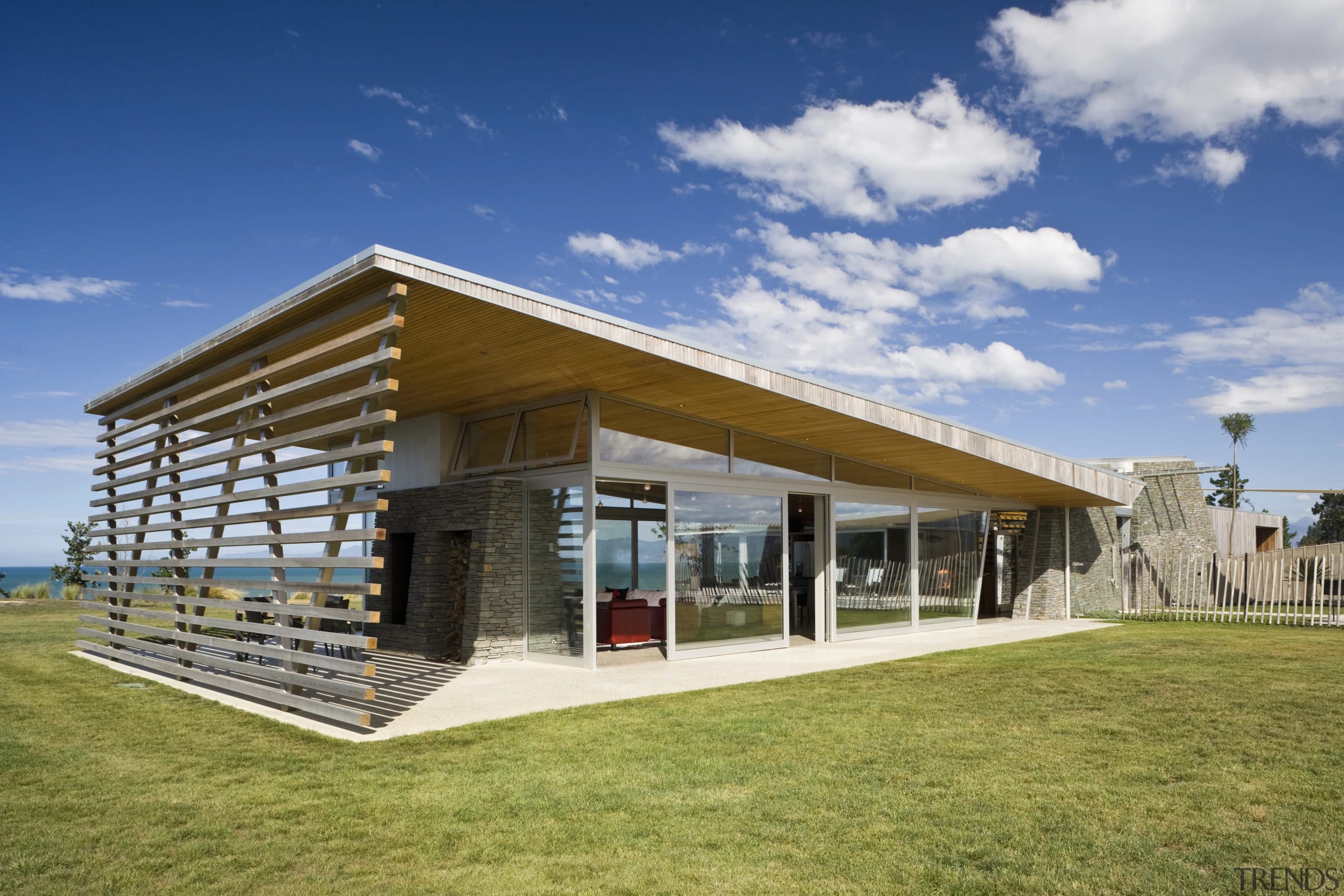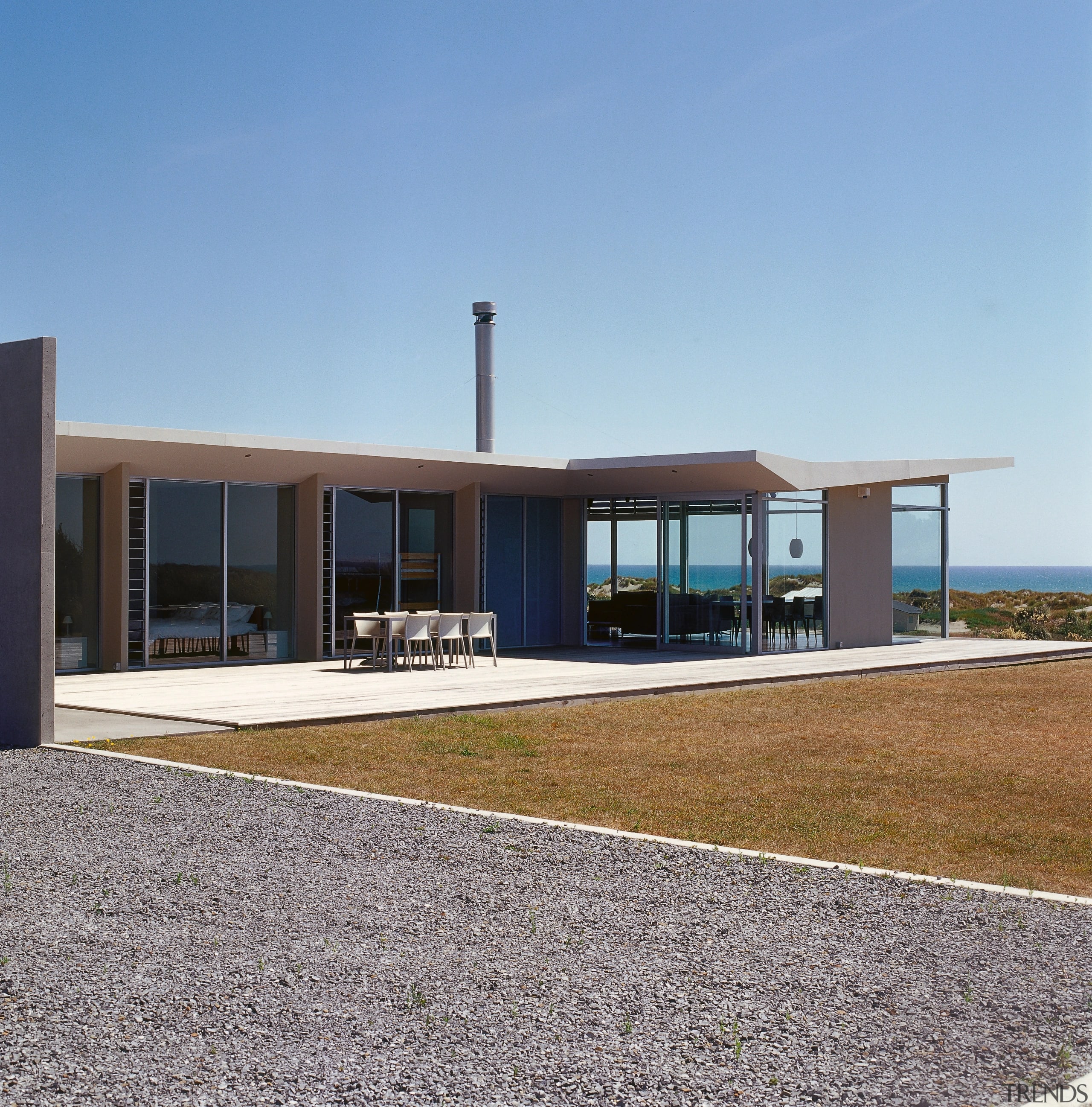 Nestled amid the tussock and the sand dunes, this contemporary beach house is at one with the landscape