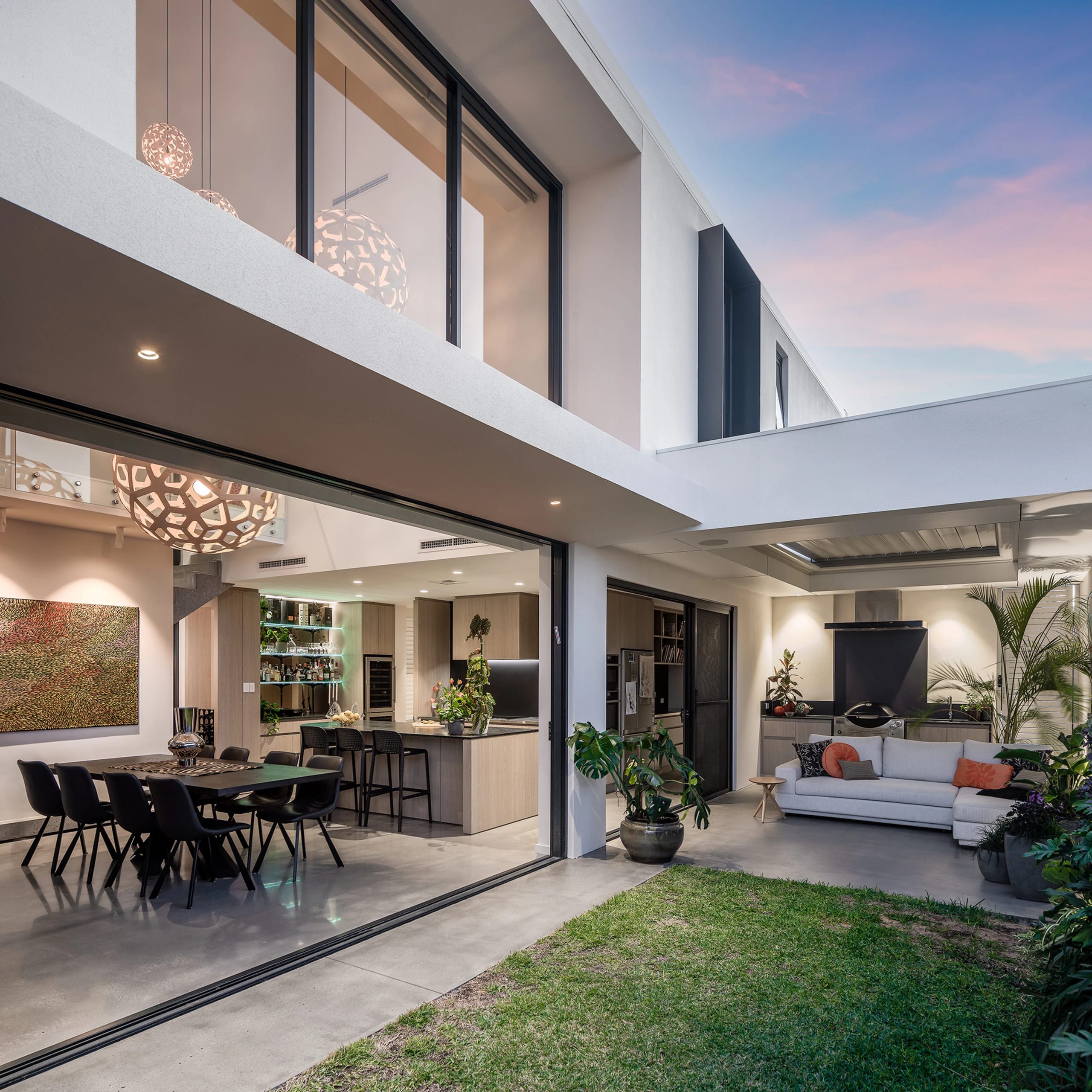 This home celebrates family, friends and artworks with a large central living space opening to contained outdoor spaces – private spaces are upstairs
