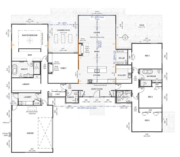 The plan celebrates graceful, light‑filled living with an open‑plan layout that flows effortlessly from a refined kitchen and dining area to outdoor spaces.