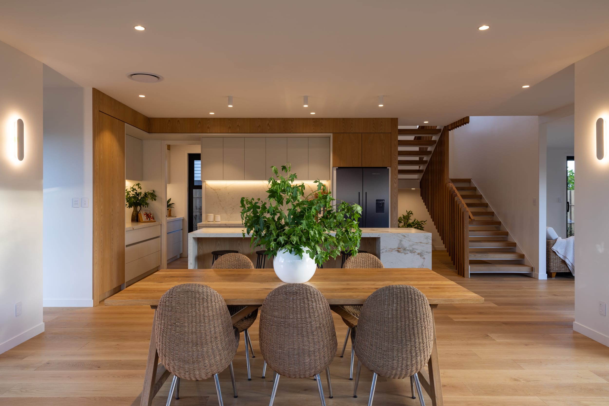 Fisher & Paykel appliances were selected for their performance and reliability while integrated storage keeps the space organised.
