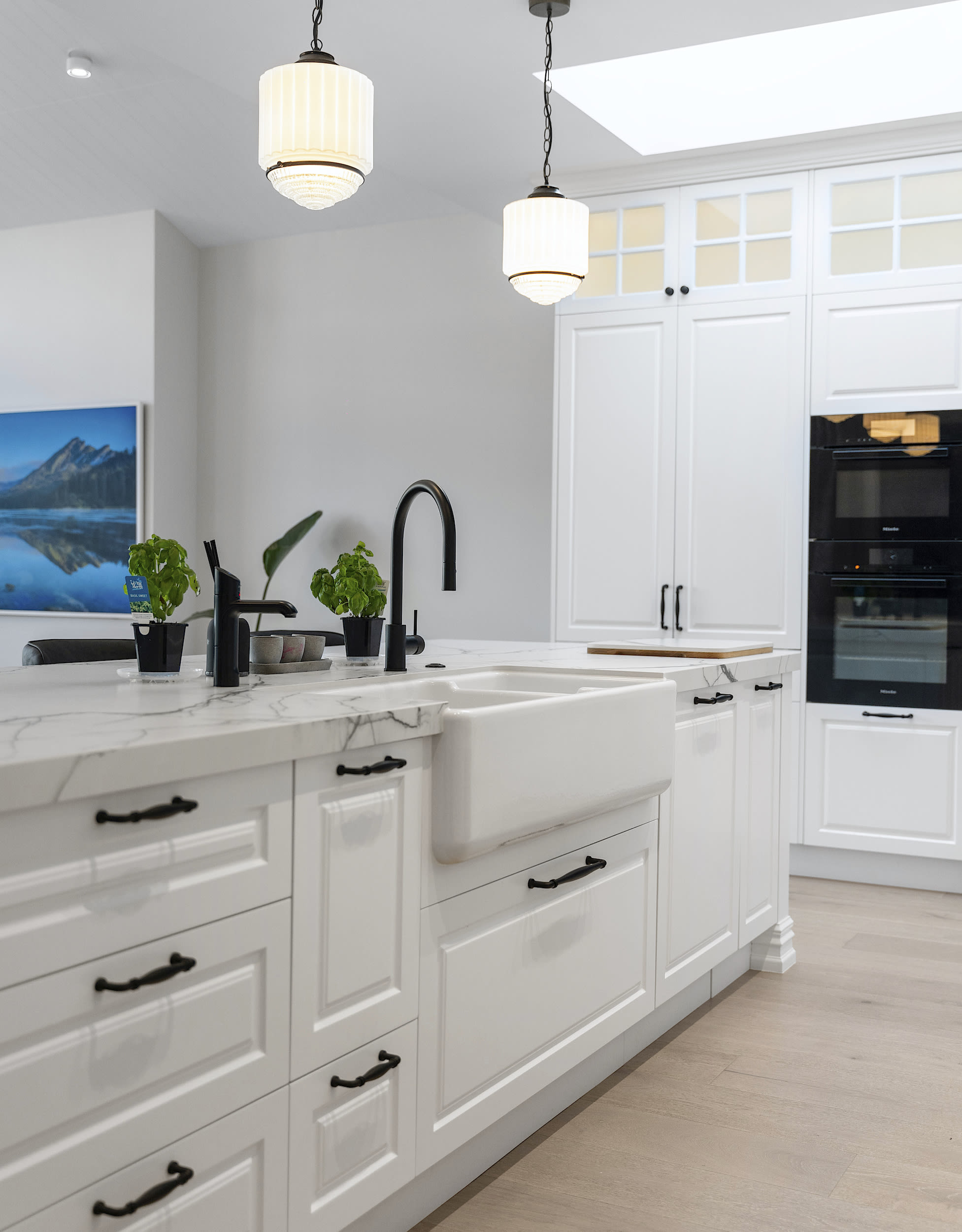 SplashbackFlorium Marble from GFL Benchtops | Kitchen sinkShaw Edgeworth Butler Sink from The Kitchen Hub |