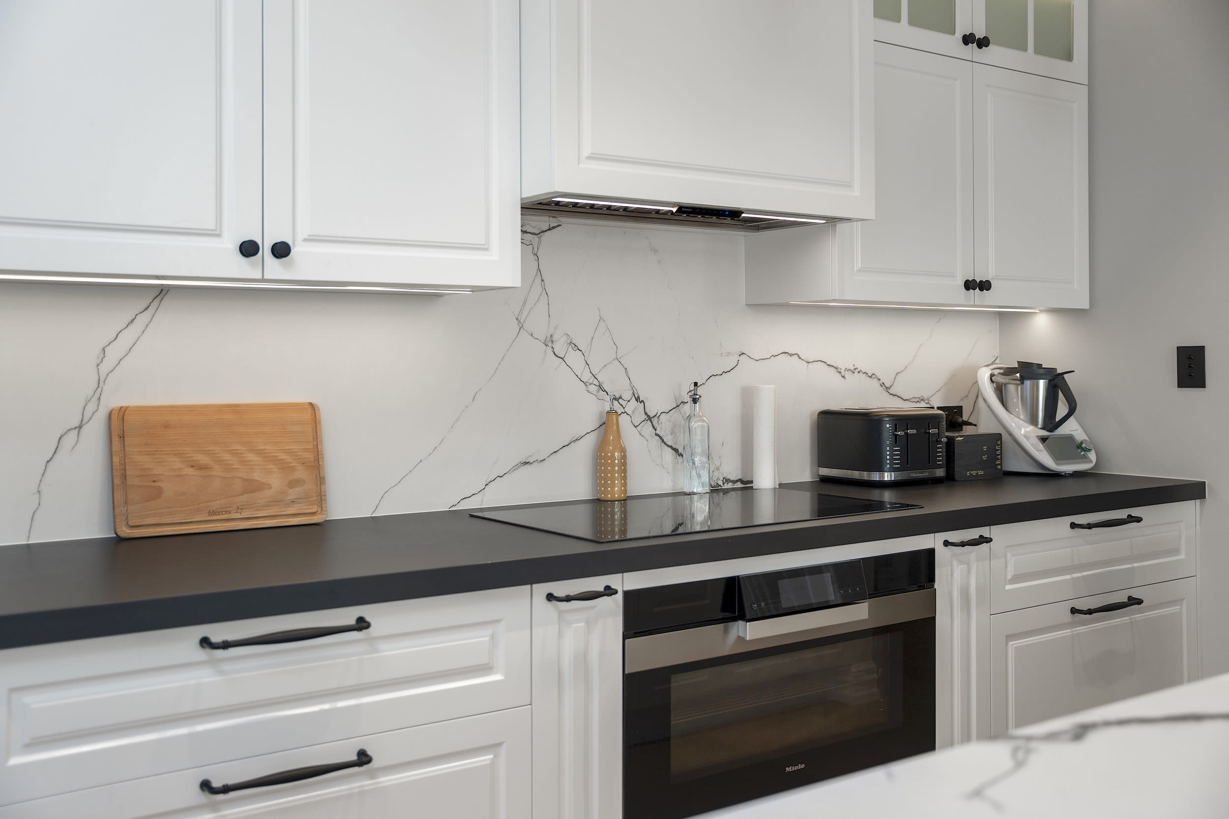 Cabinetry hardwareSariat Range from Iver Door Hardware; Blum drawer hardware | BenchtopsFlorium Black and Florium Marble |