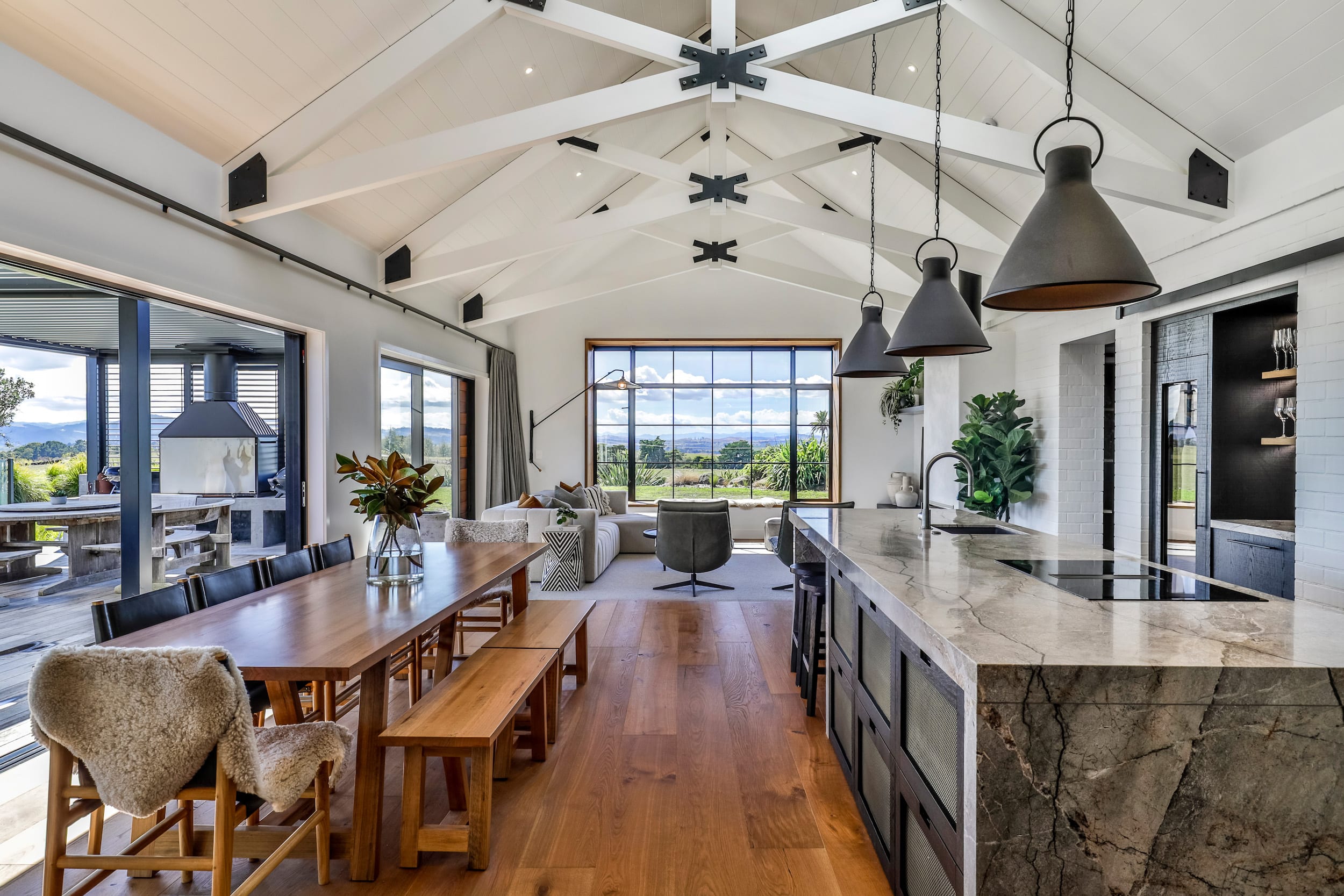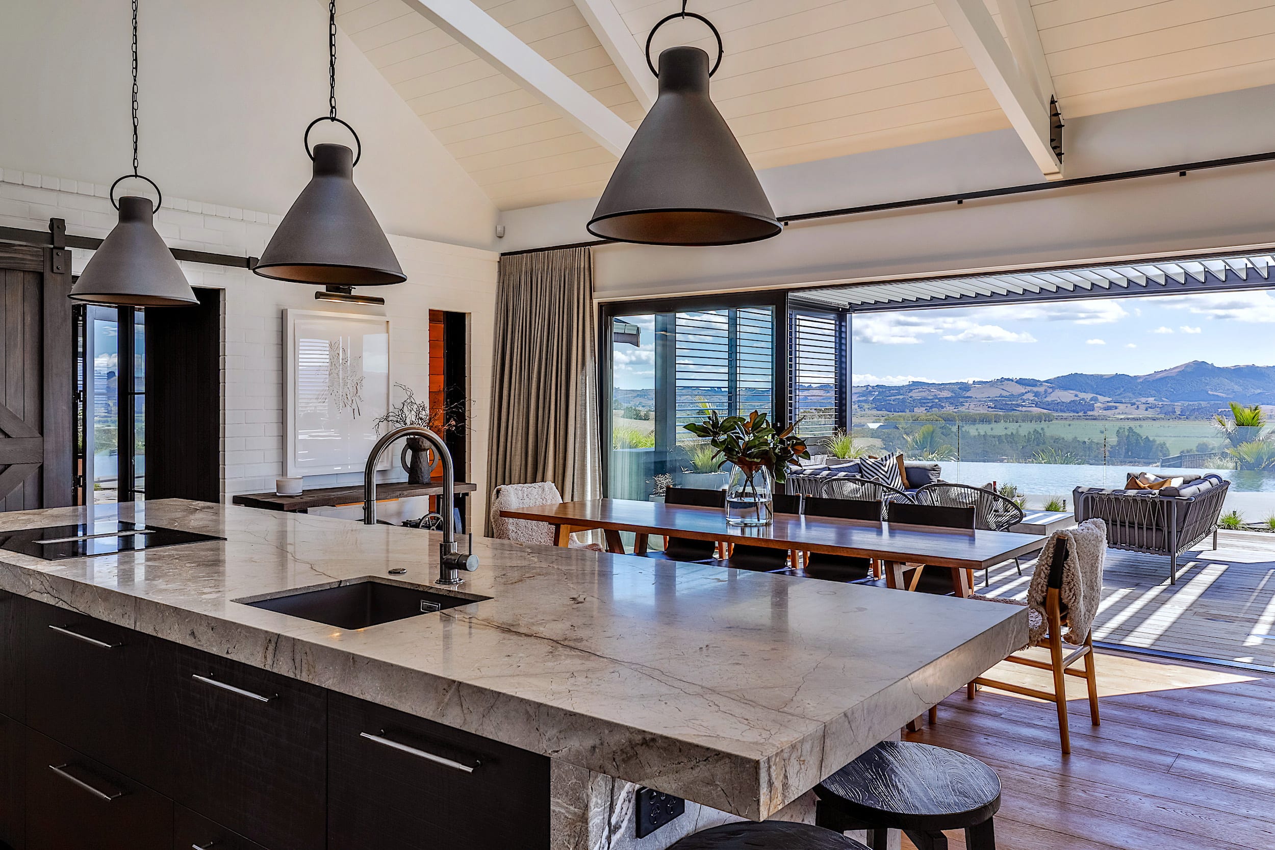 The design focusses on capturing breathtaking country views, enhancing indoor-outdoor flow, and creating a centrepiece for family gatherings and entertaining.