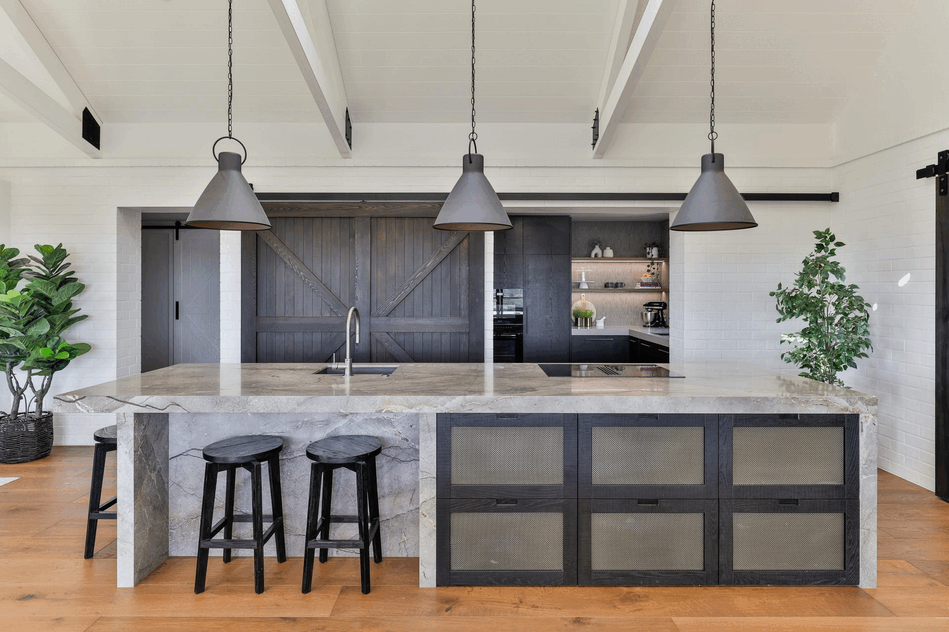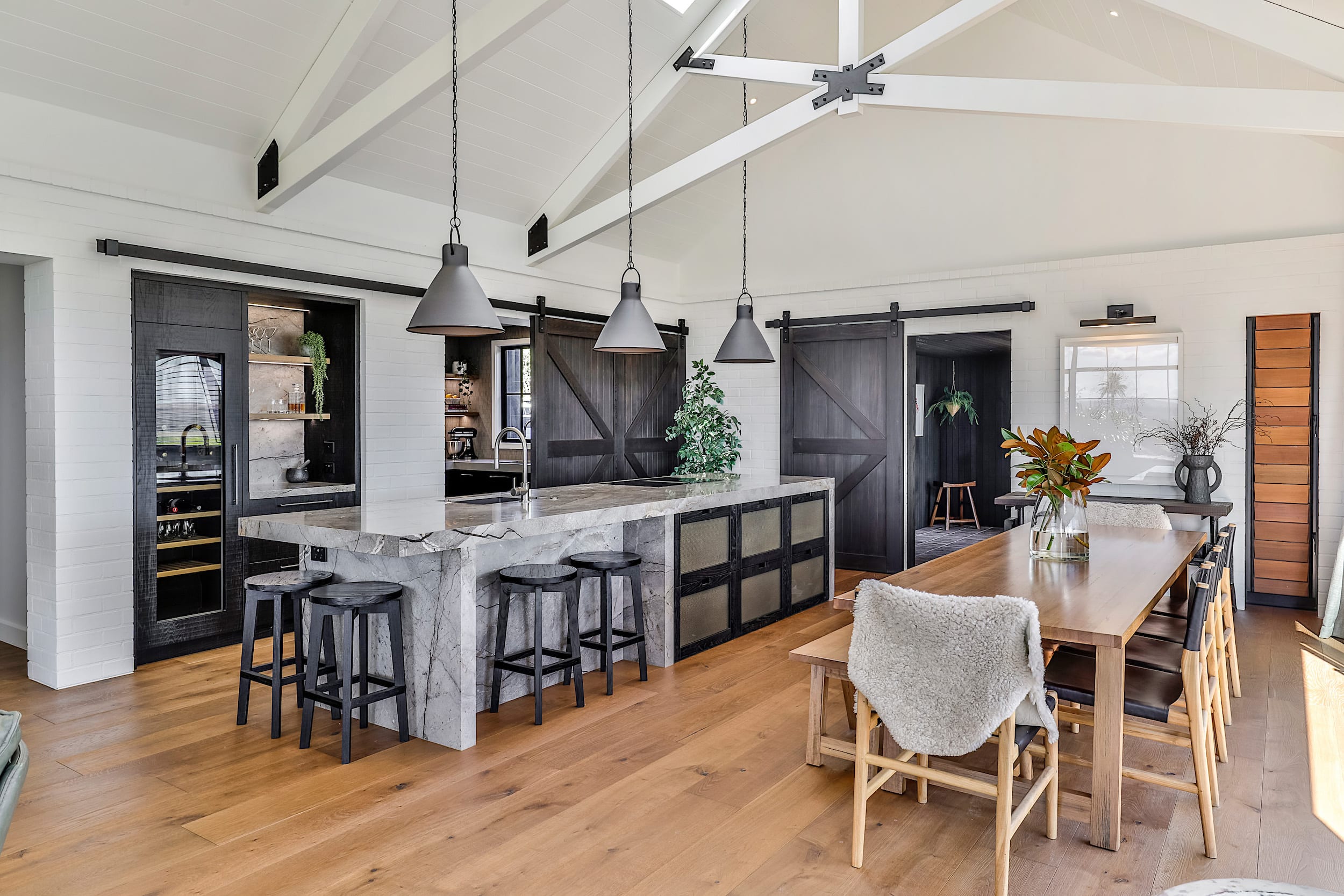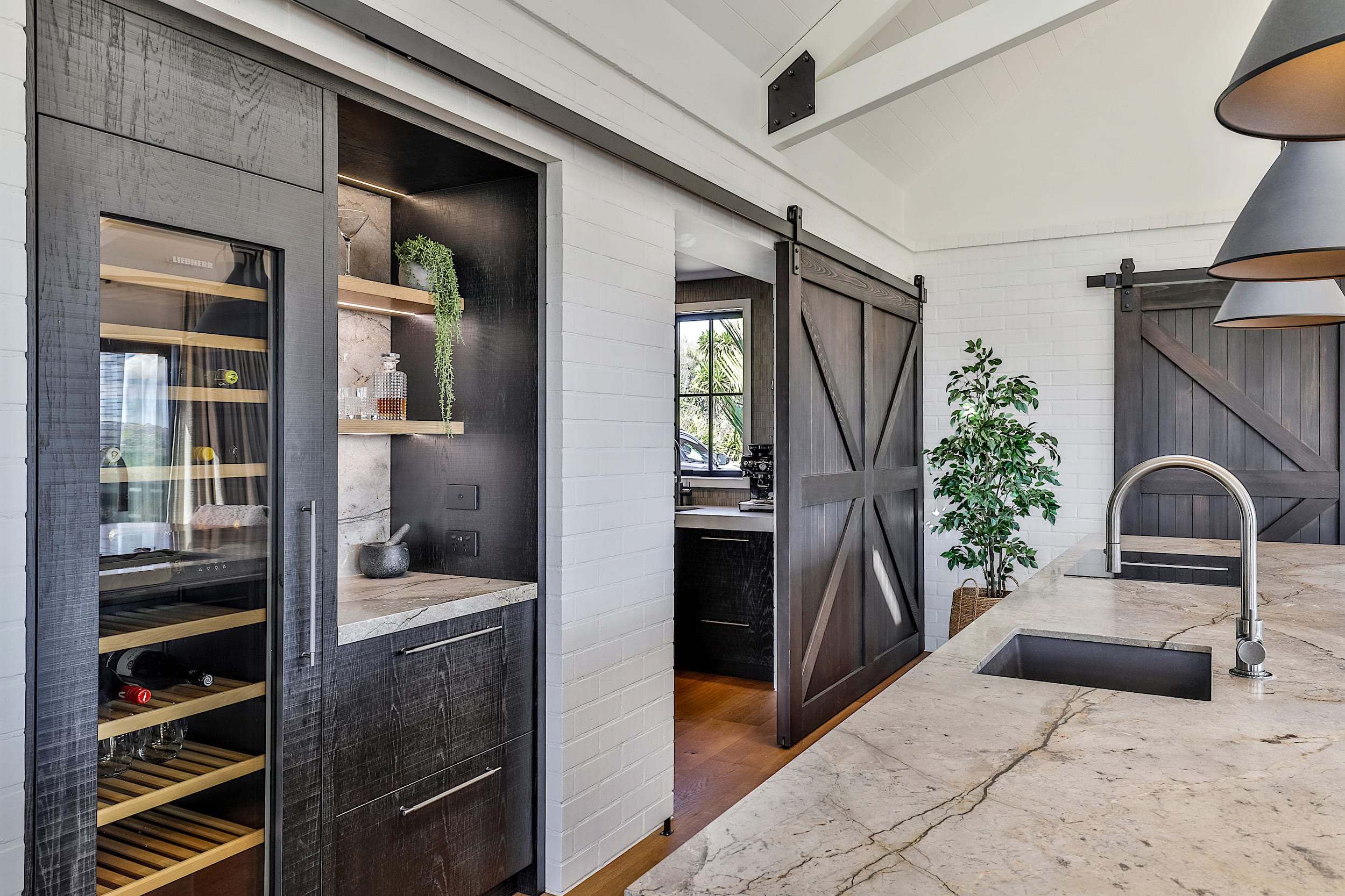 This led to the inclusion of a sliding barn-style pantry door – a functional yet stylish feature that keeps the prep and storage area open and connected for everyday use while offering the flexibility to be closed off when entertaining.