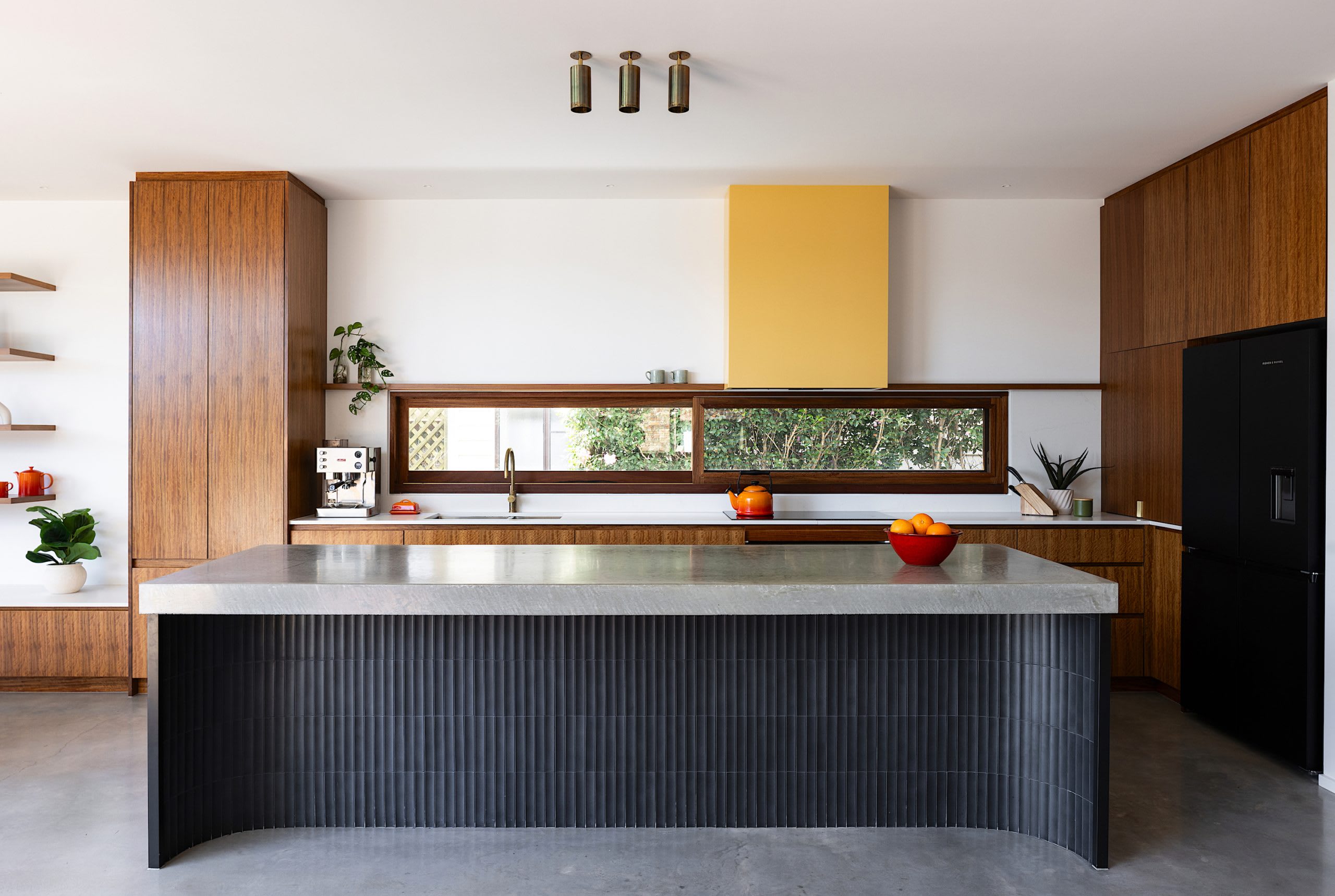 This kitchen deftly balances a sculptural presence with sound functionality – form, materiality, and subtle detailing are all on show while integrated appliances and a discreet pantry all keep their head down