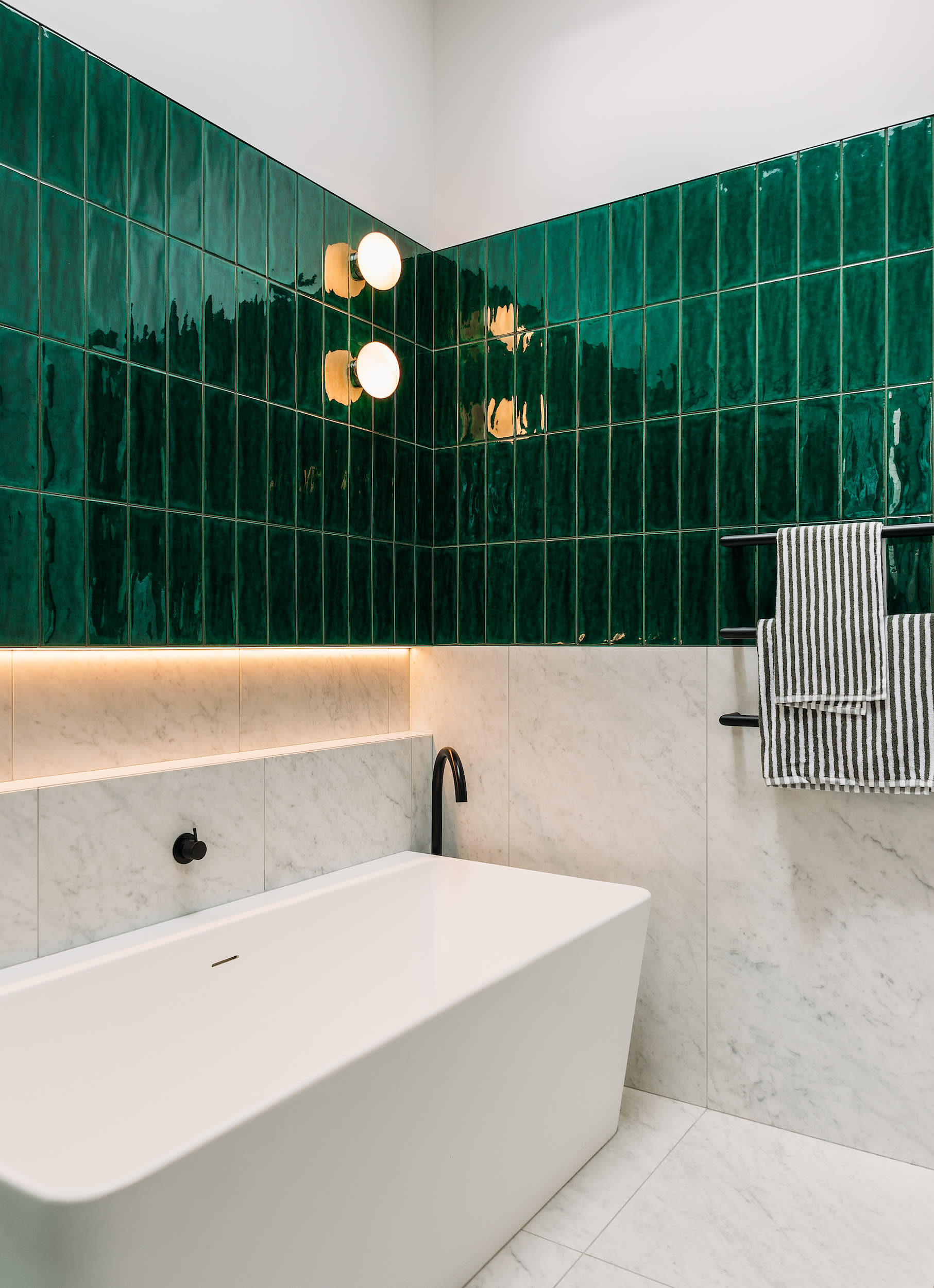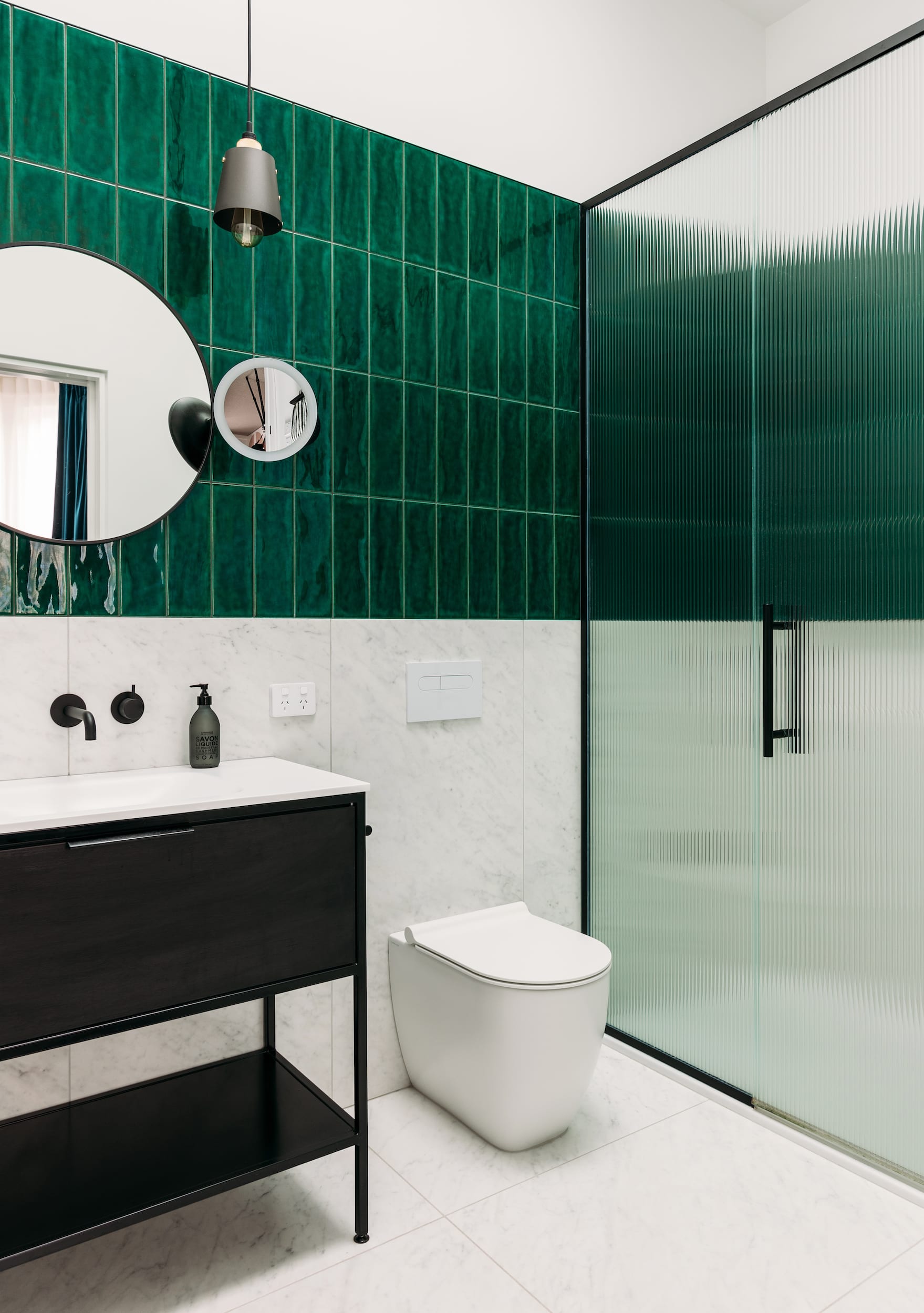 The private spaces contrast the calm public zones, bursting with fearless colour and individuality through unexpected, jewel-toned combinations.