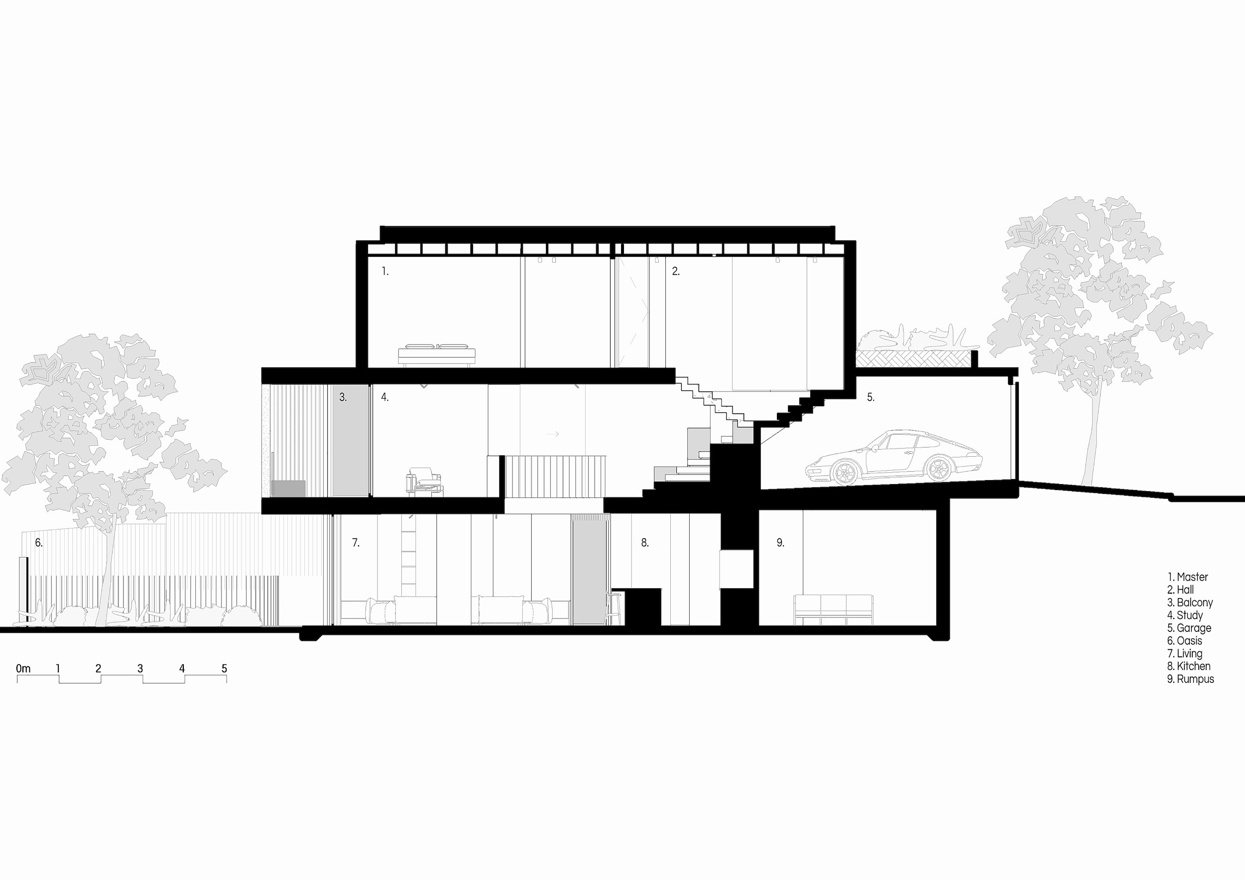 The landscape is interwoven throughout, a mediator between architecture and environment, softening thresholds and extending the experience of living into the natural realm.