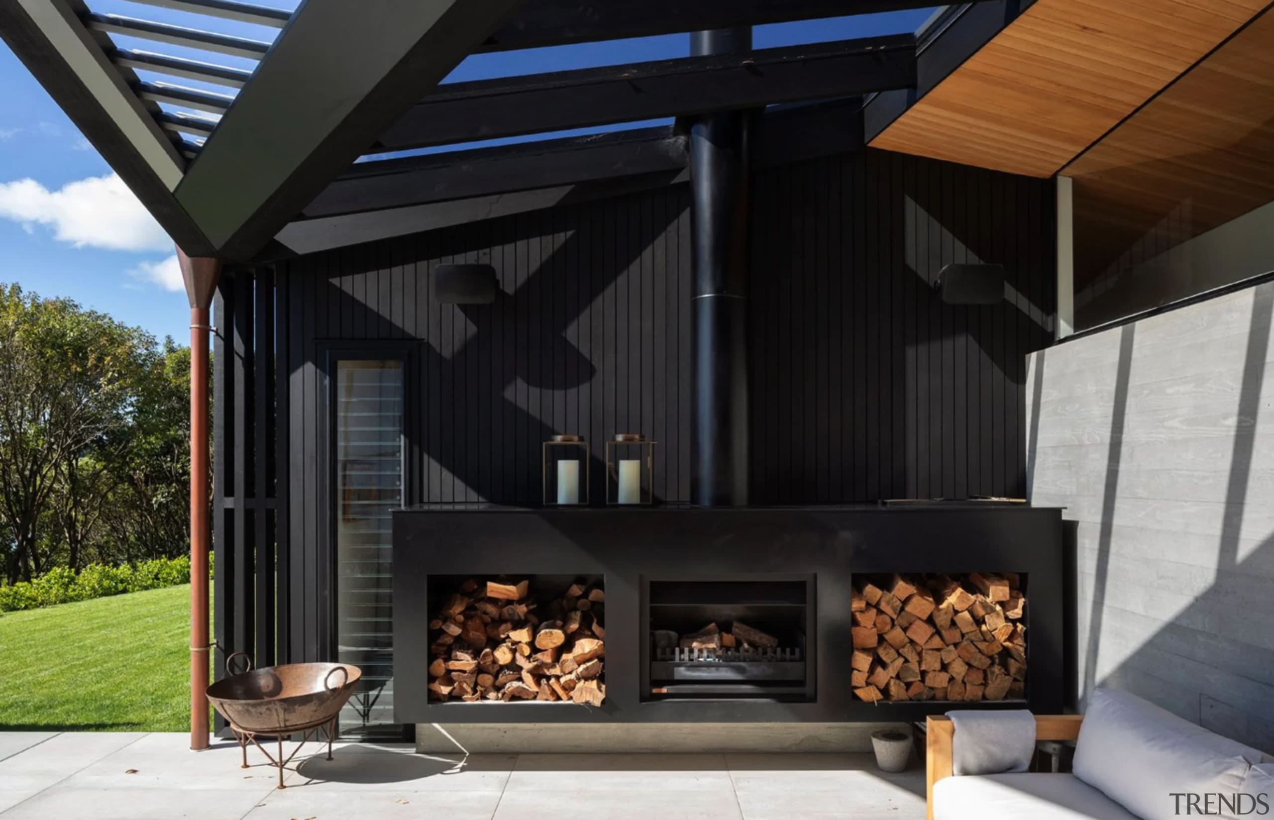 This cliff-side home is all about year round indoor-outdoor enjoyment – pride of place in the central outdoor room is a Jetmaster Alfresco Outdoor Wood Fireplace, by The Fireplace