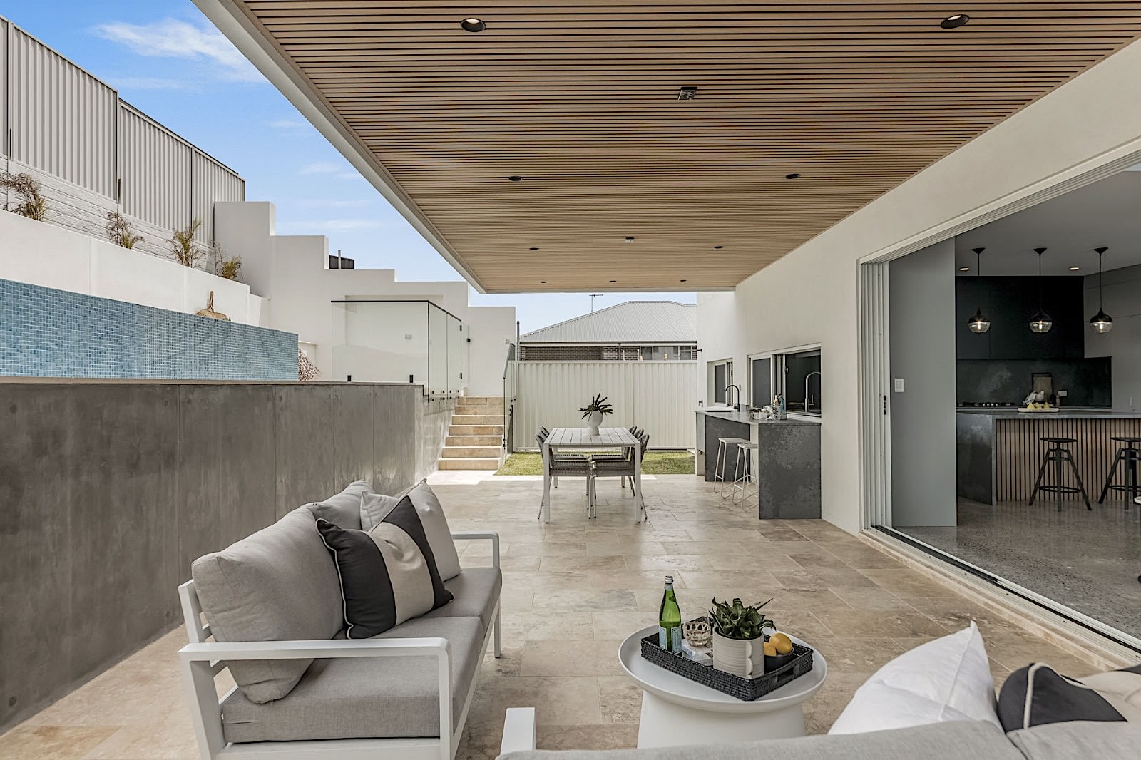 Triple stacker doors lead seamlessly to the alfresco areas, creating a perfect setting for extended gatherings.