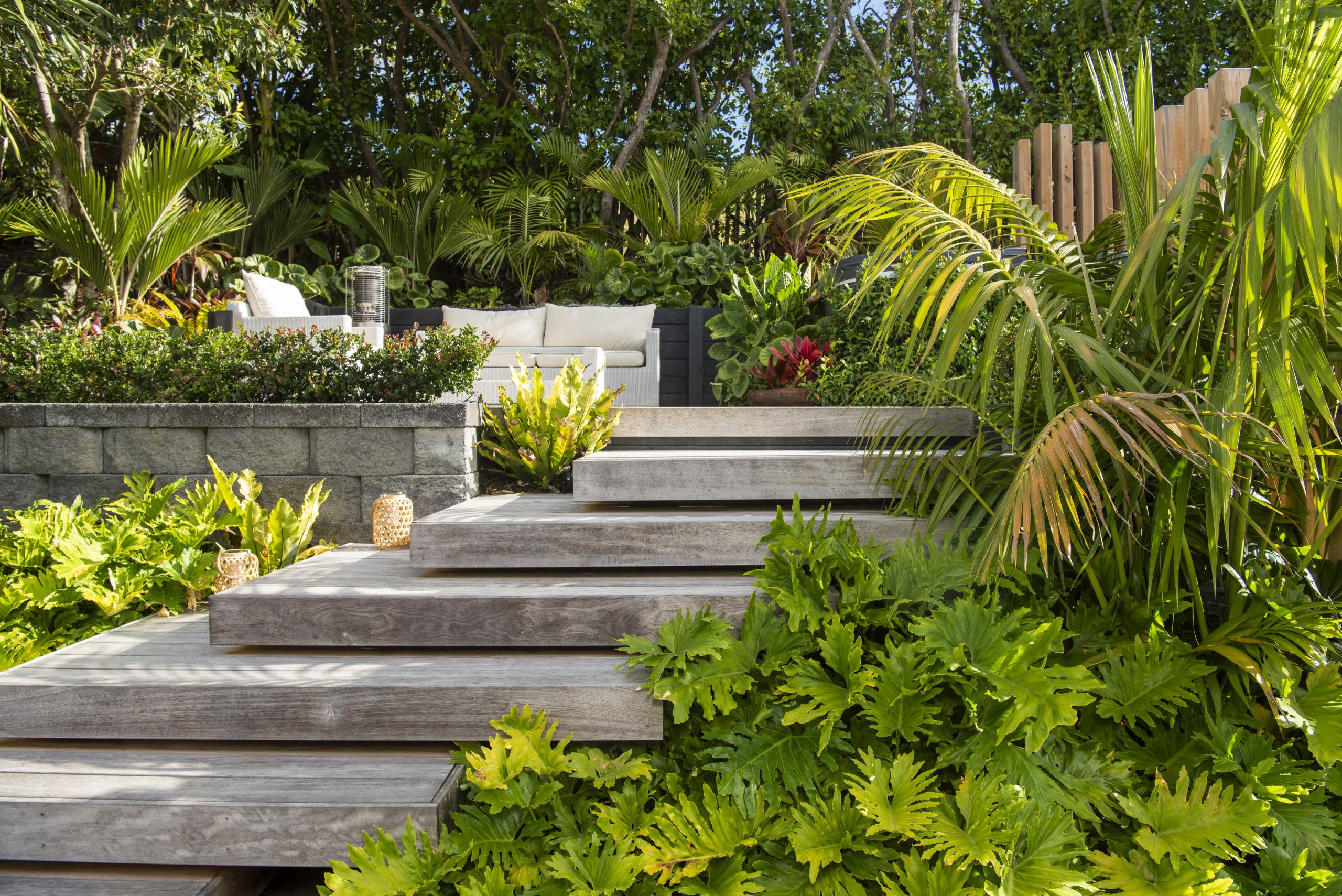 The Orewa Sub-Tropical Retreat project is a residential landscape transformation designed to enhance outdoor living and create a lush, resort-like retreat.
