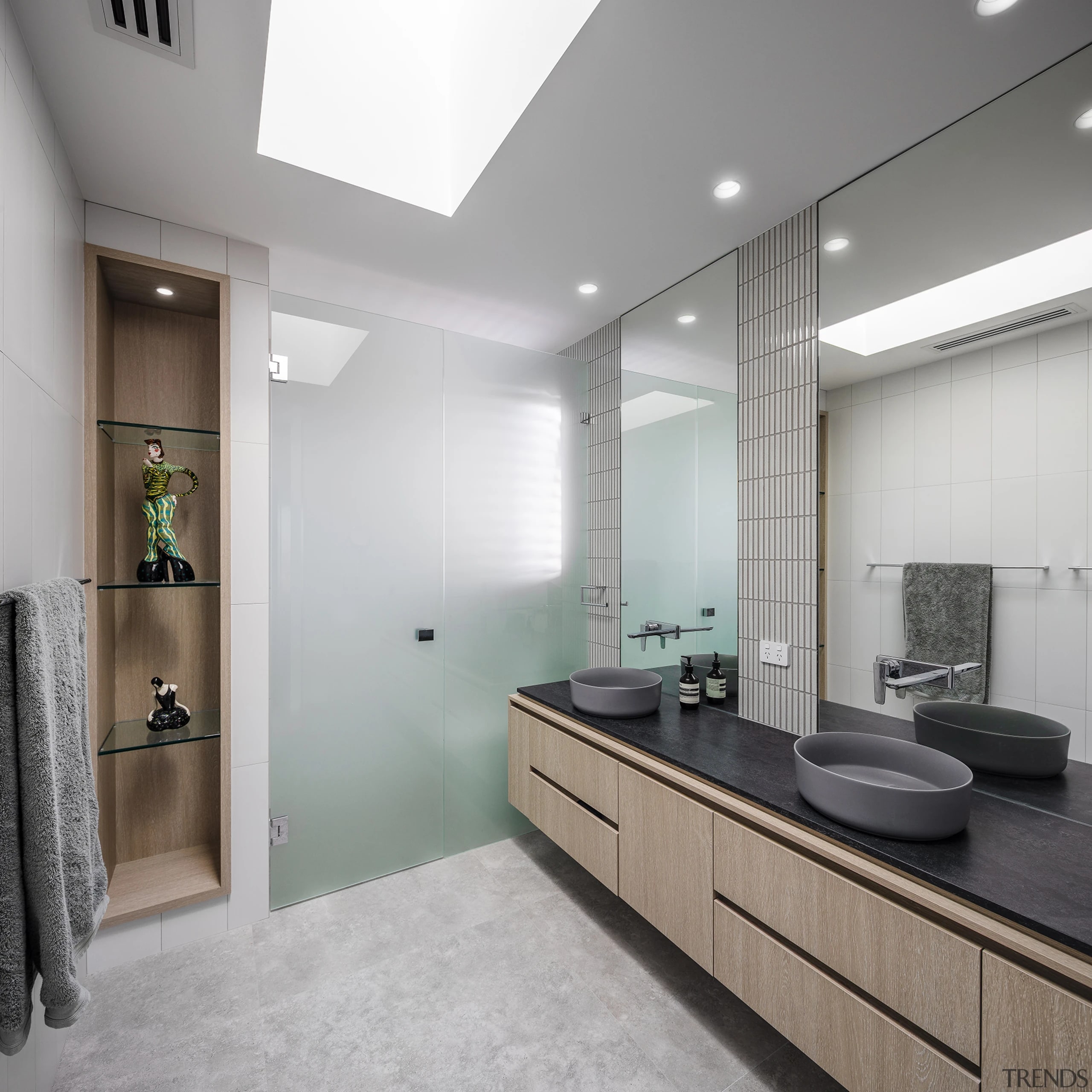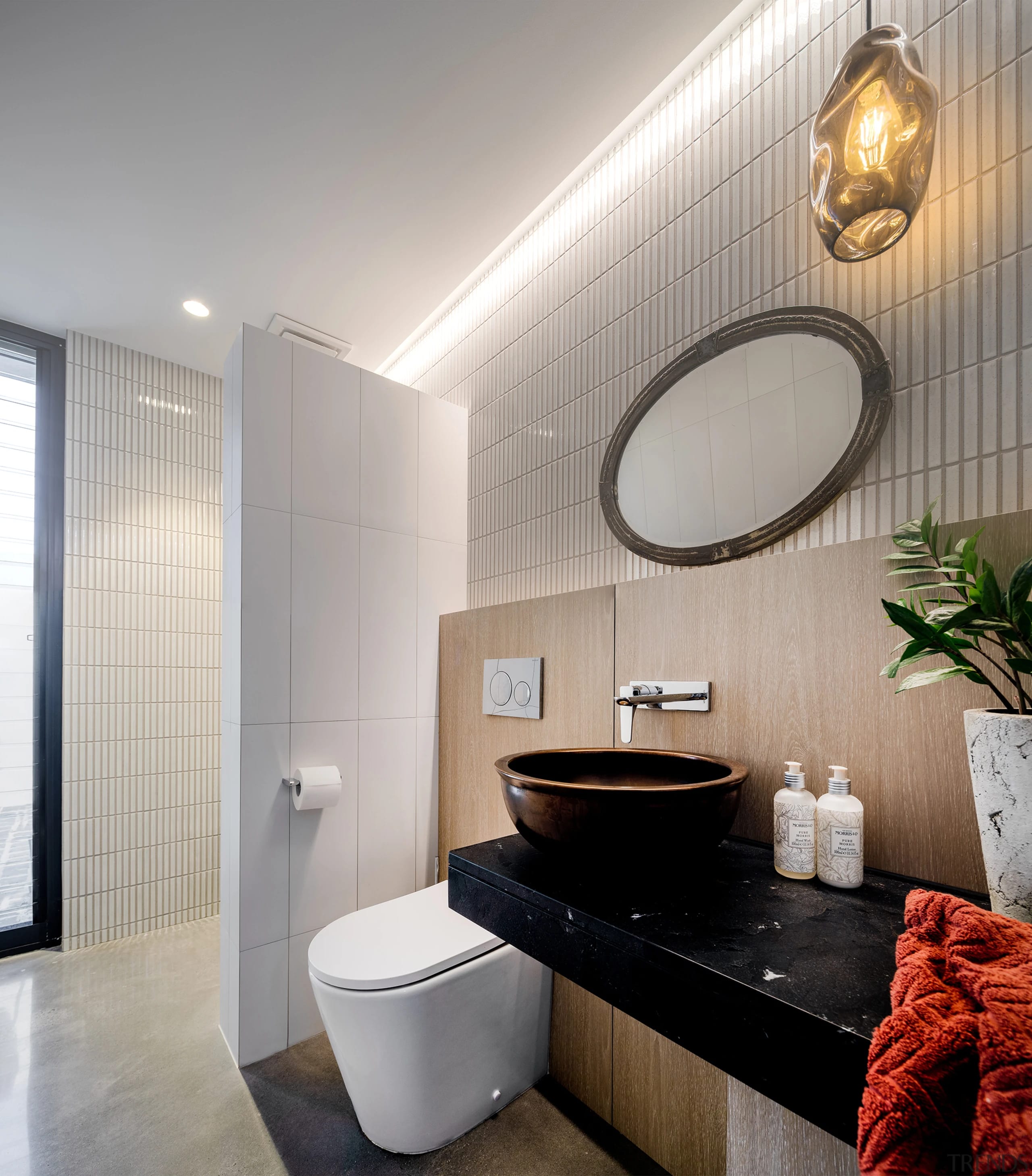 Bathroom tilesPorcelain and mosaic, from Original Ceramics | PaintExternal Acrylic Render System – Masterwall Australia; interior – Dulux Paints |