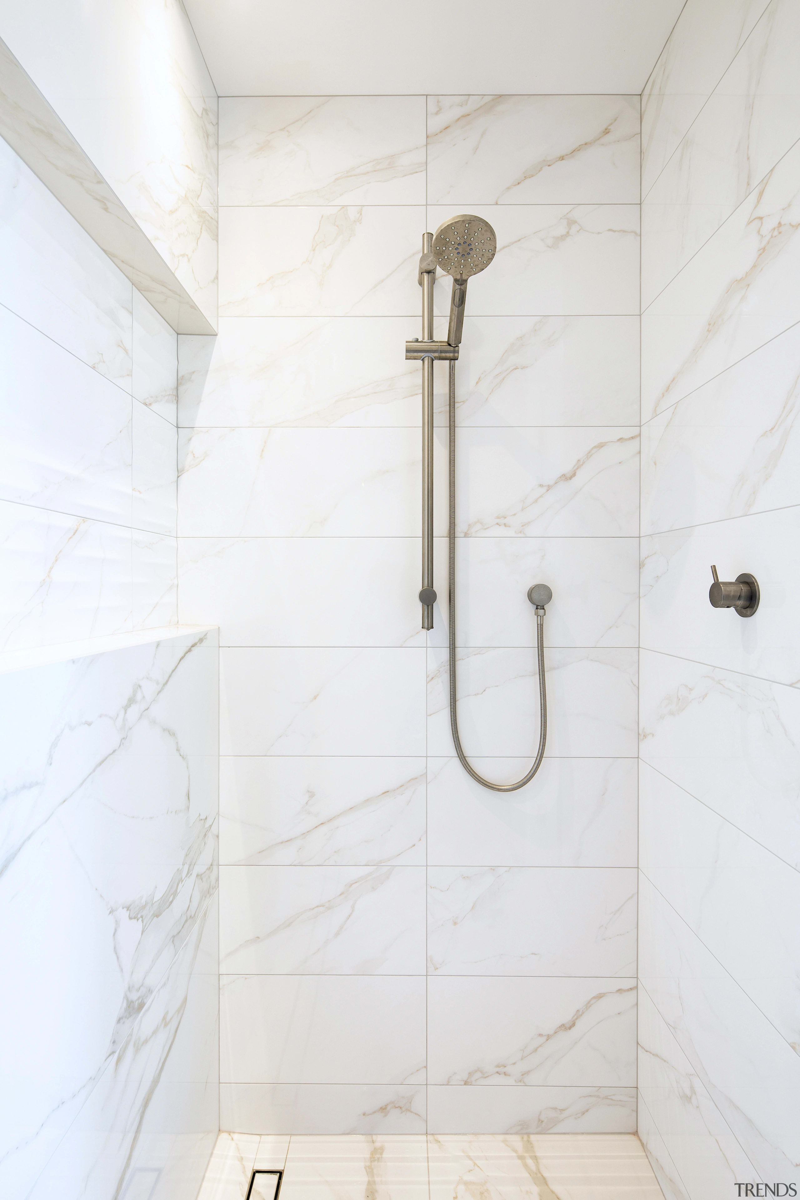 The challenge with this bathroom was organising the positioning of the various items on the owners’ wish list given the narrow width of the space and the different sizes of the three varying format tiles chosen.