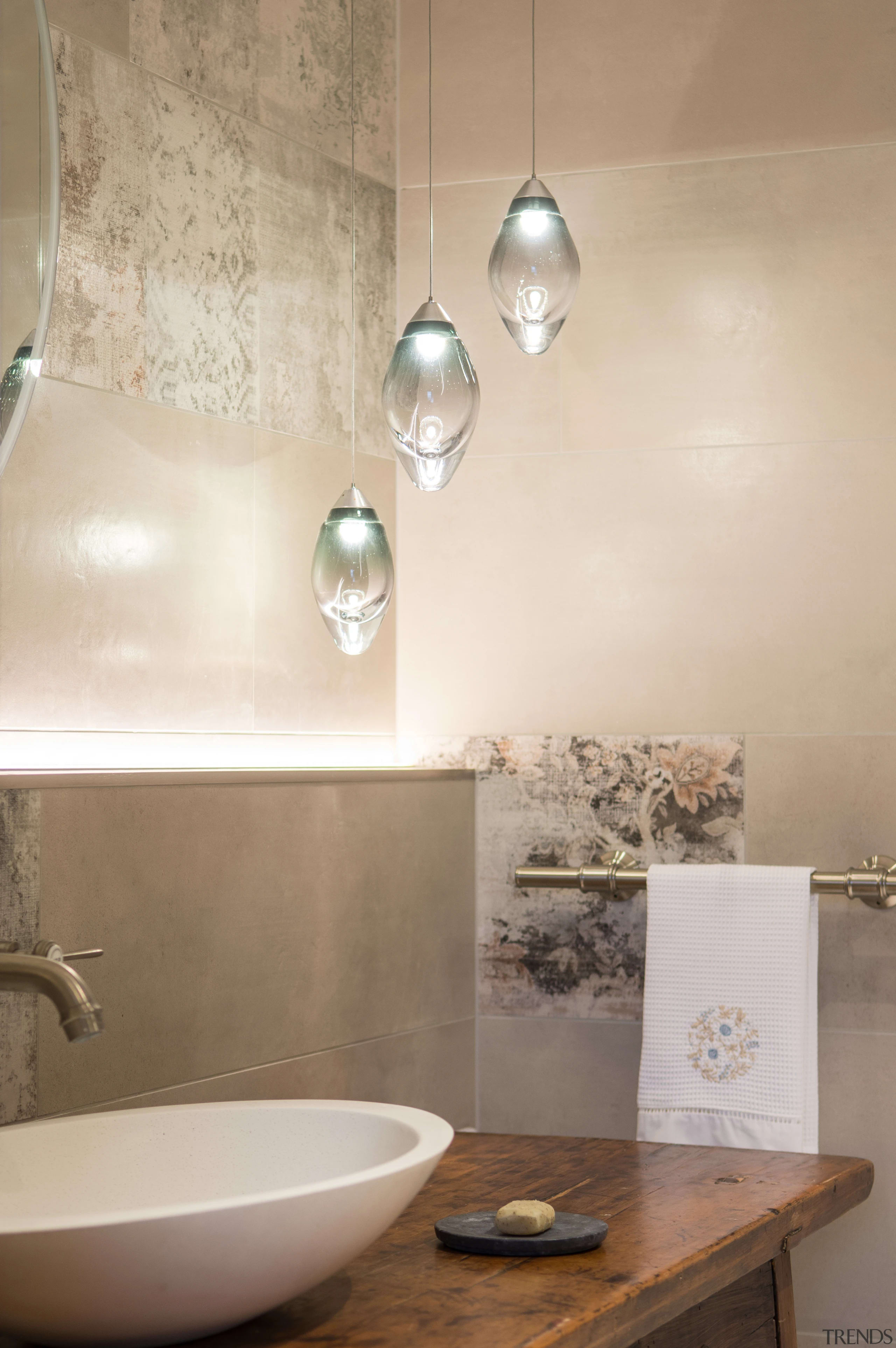 One of the owner’s favourite features is the Soktas Ost pendant lights hanging above the vanity. Looking like delicate hanging sculptures, these seem to tread the middle ground between traditional and highly contemporary.