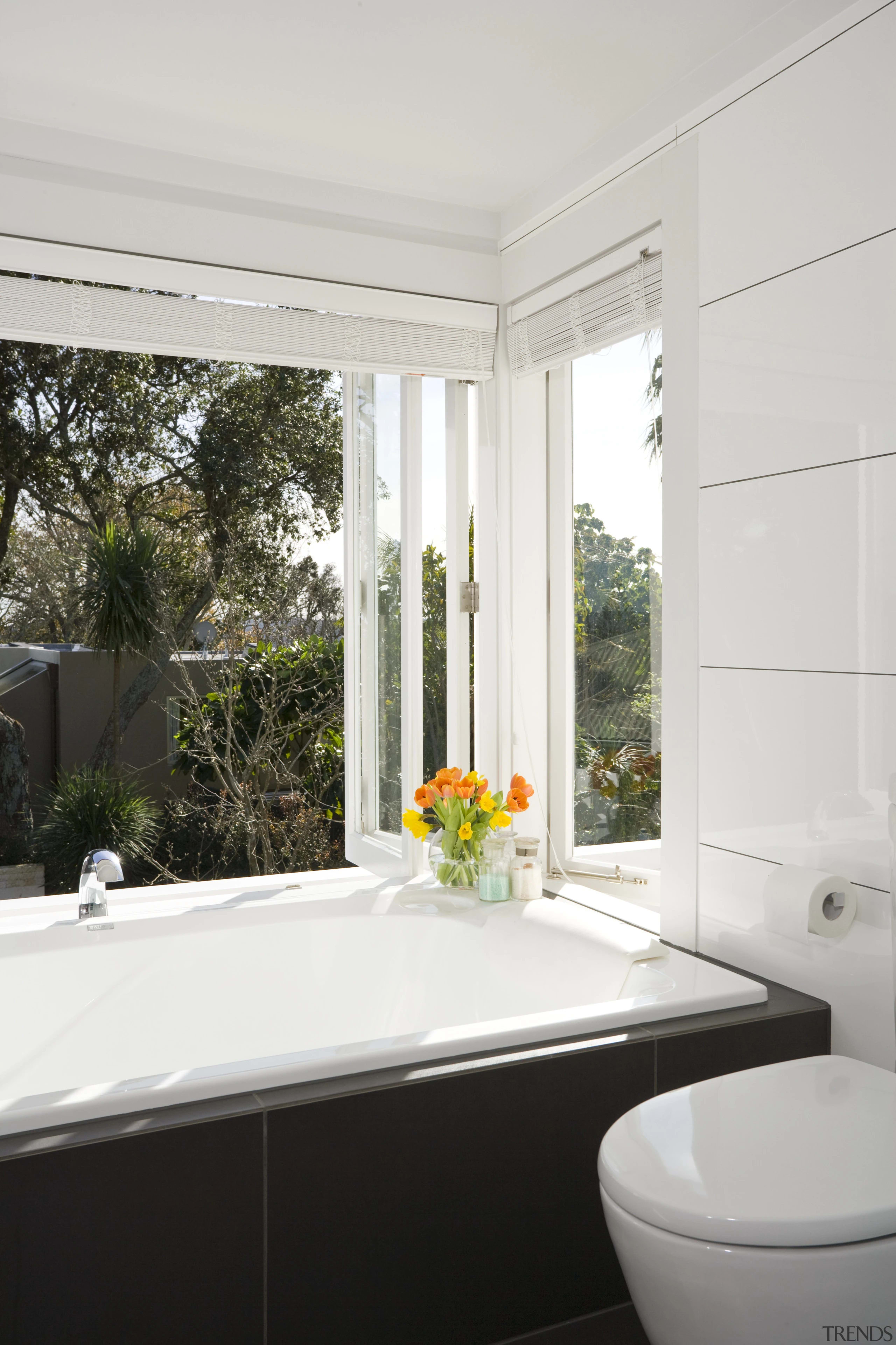 Former storage became a large shower area and a longer, deeper bath now fills the width of the room. Bifold windows look onto the garden.