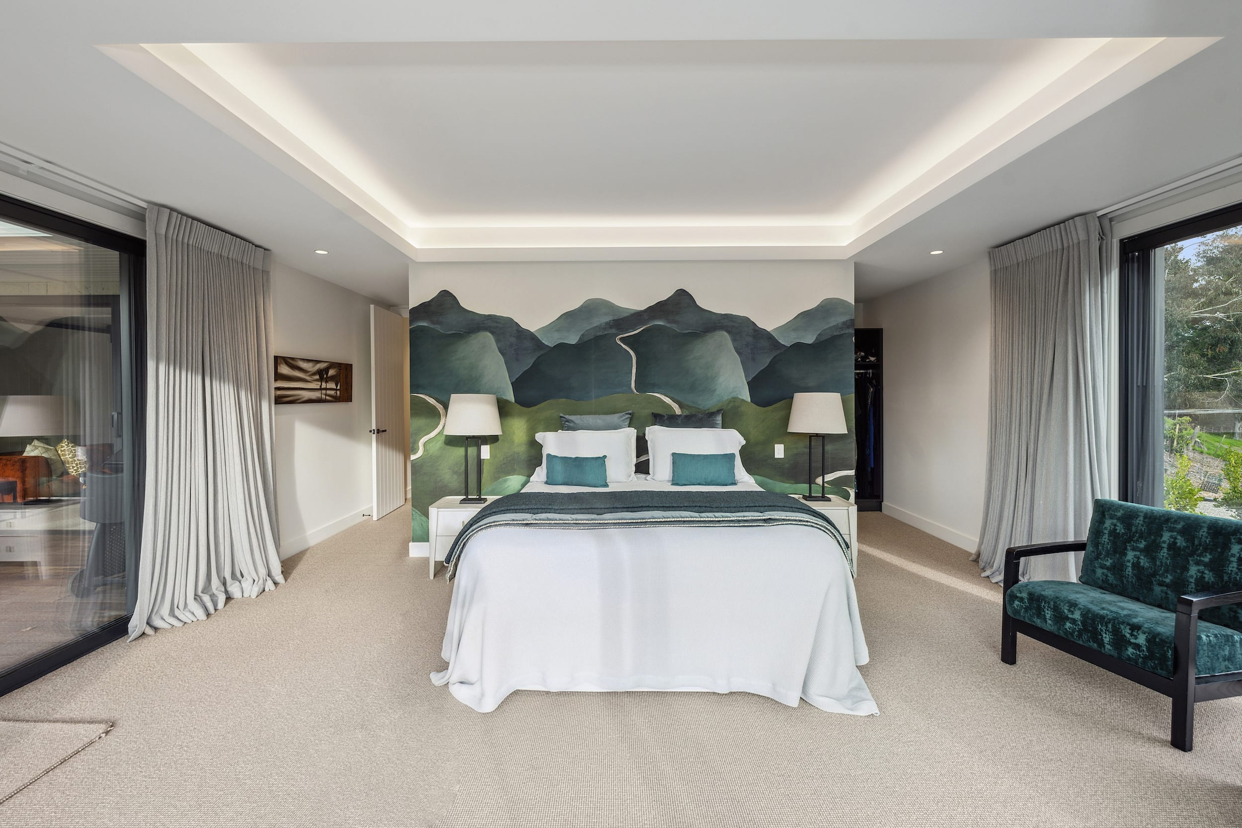 A three zoned layout provided deliberate separation between areas of use: the main suite in one wing with walk-in wardrobe, ensuite and library, and a guest wing opposite for family and visitors.