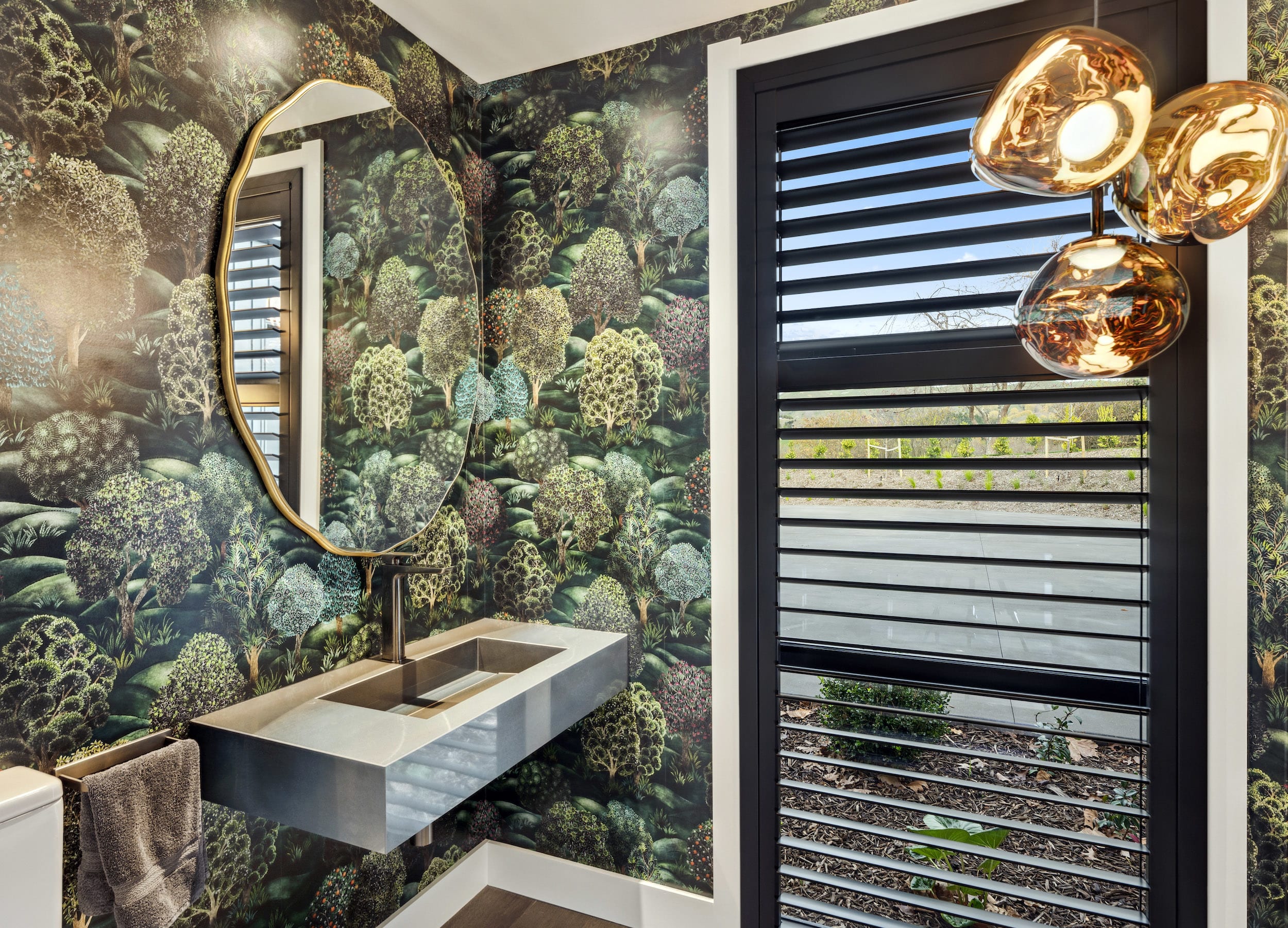 Feature lightingPowder room – Tom Dixon Melt Chandelier; dining room – Nightworks Duet Pendant | AwardsTrends International Design Awards (TIDA) Homes – Highly Commended |