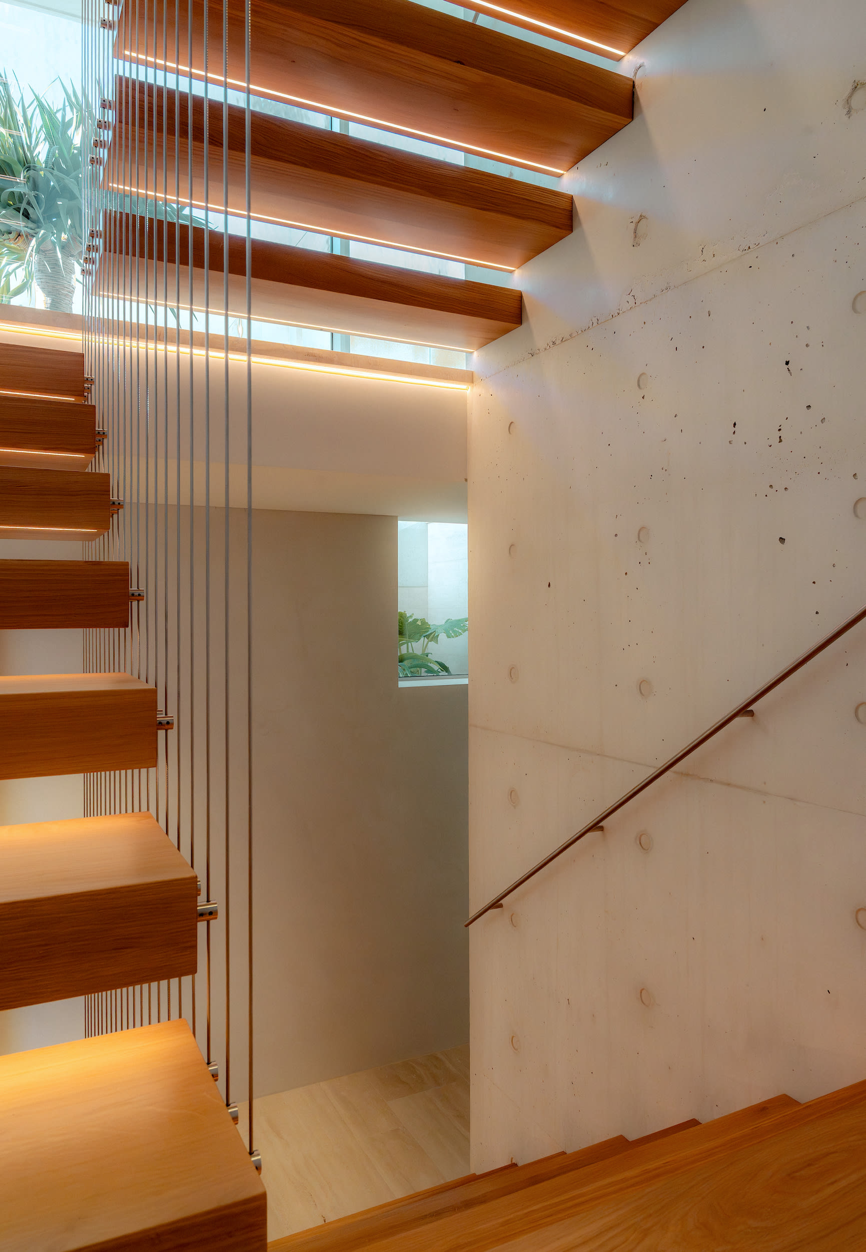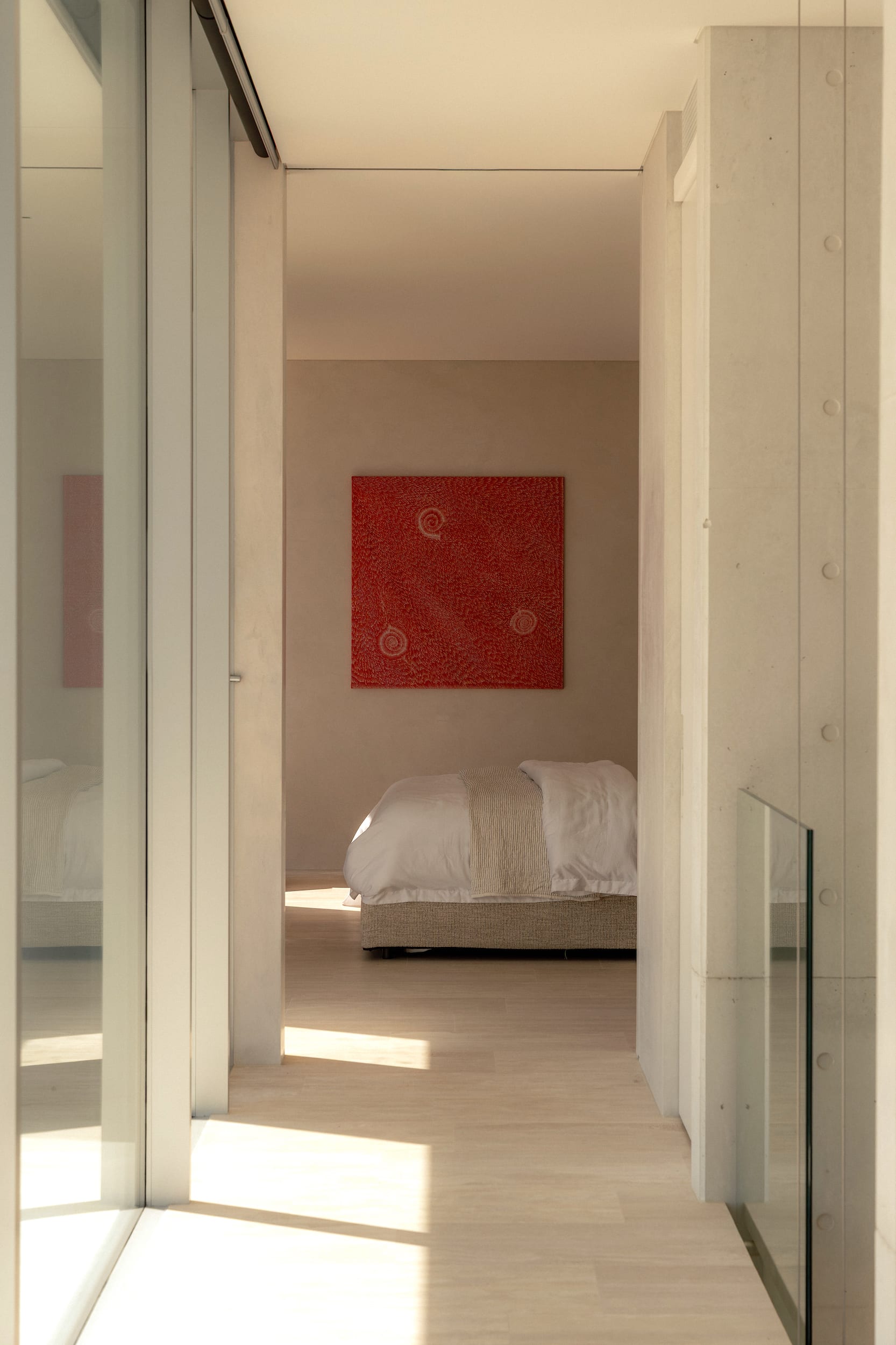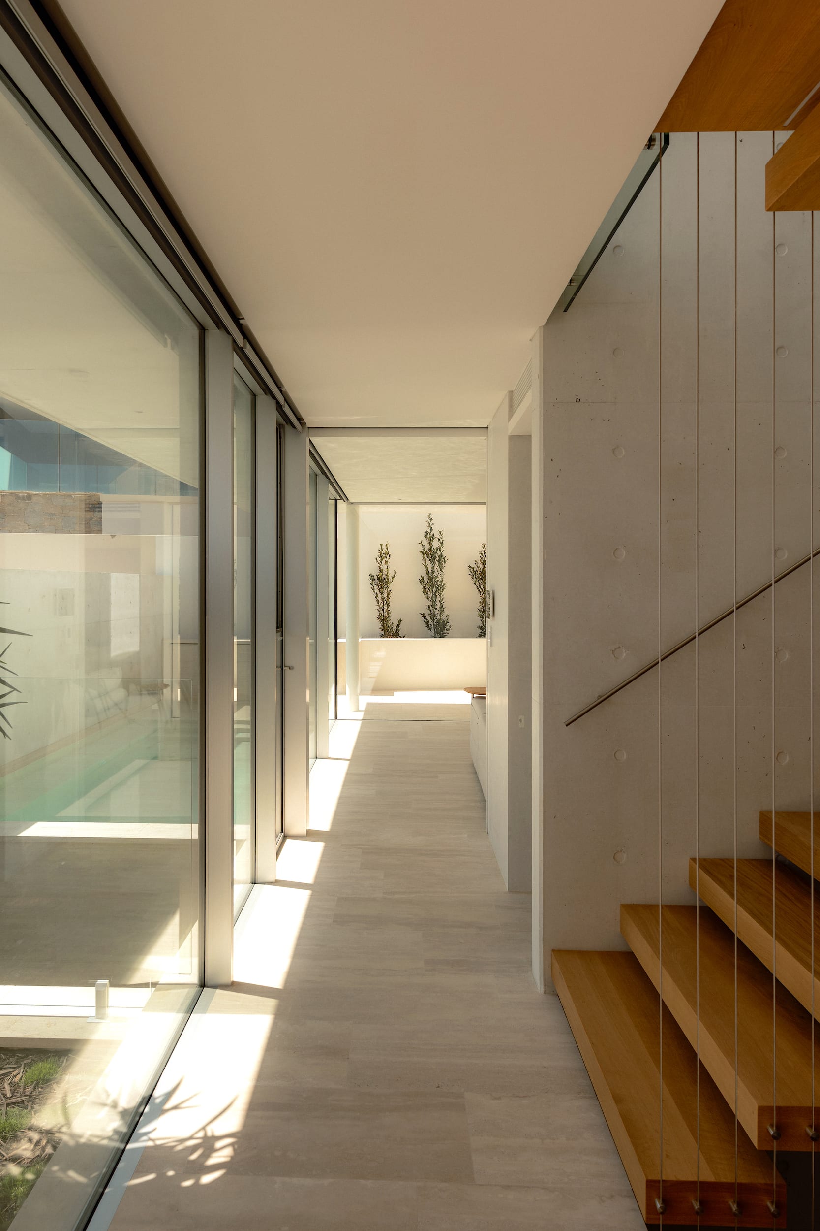 The light-toned concrete reflects summer heat, and its high thermal mass helps regulate indoor temperatures throughout the year.