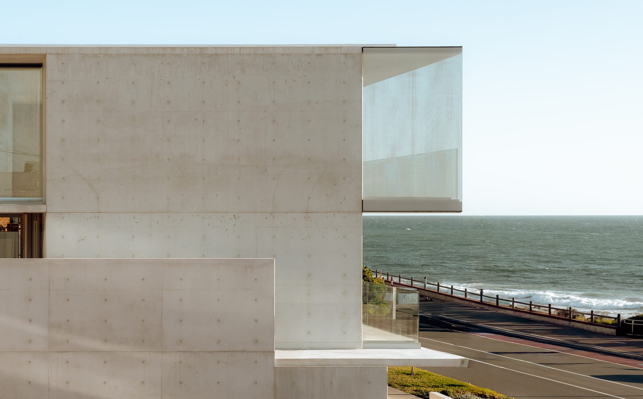 This high-performance timber is exceptionally resistant to weathering and, over time, will naturally bleach to a silver tone – harmonising with the white concrete and enhancing the coastal aesthetic