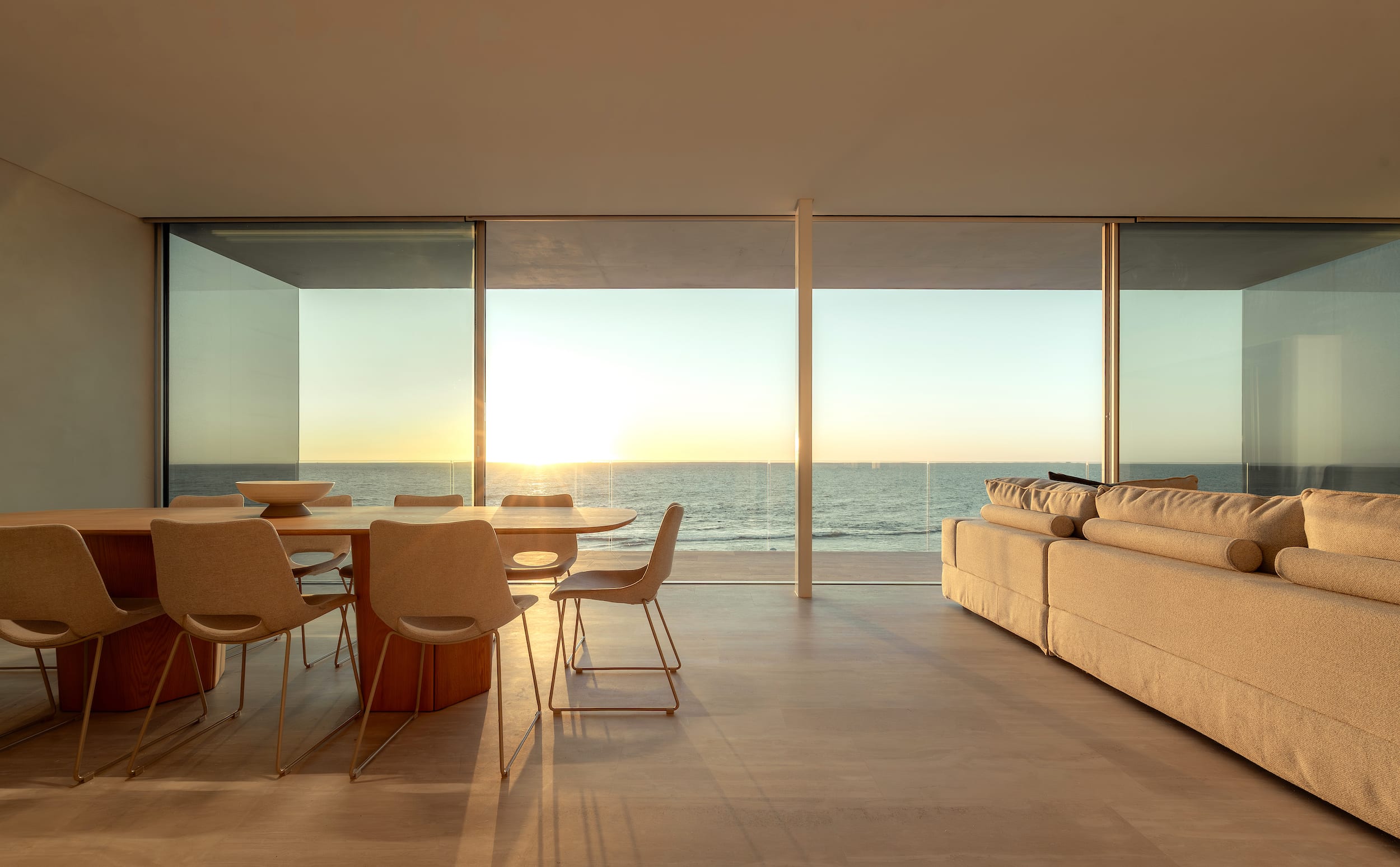 Large, automated sliding glass doors open the living area to cooling sea breezes.
