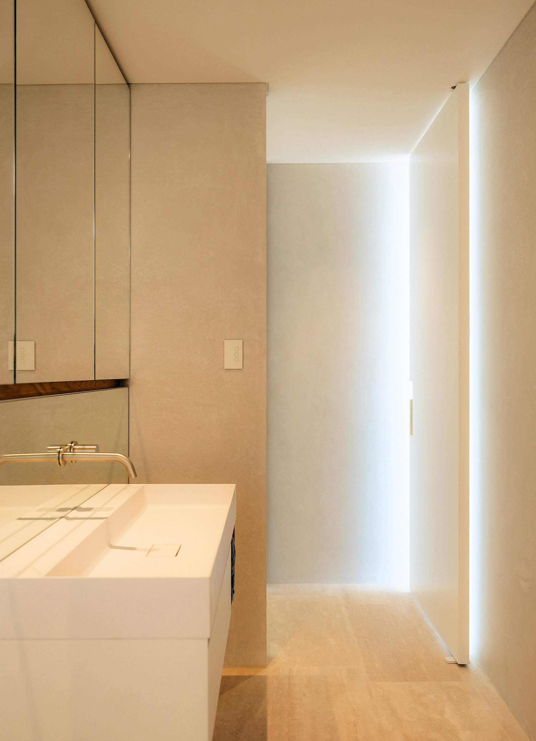 Window / door joineryAuto Sliding Doors with Sky-Frame Drive | Main flooringTravertine, honed; Rialto natural Stone |