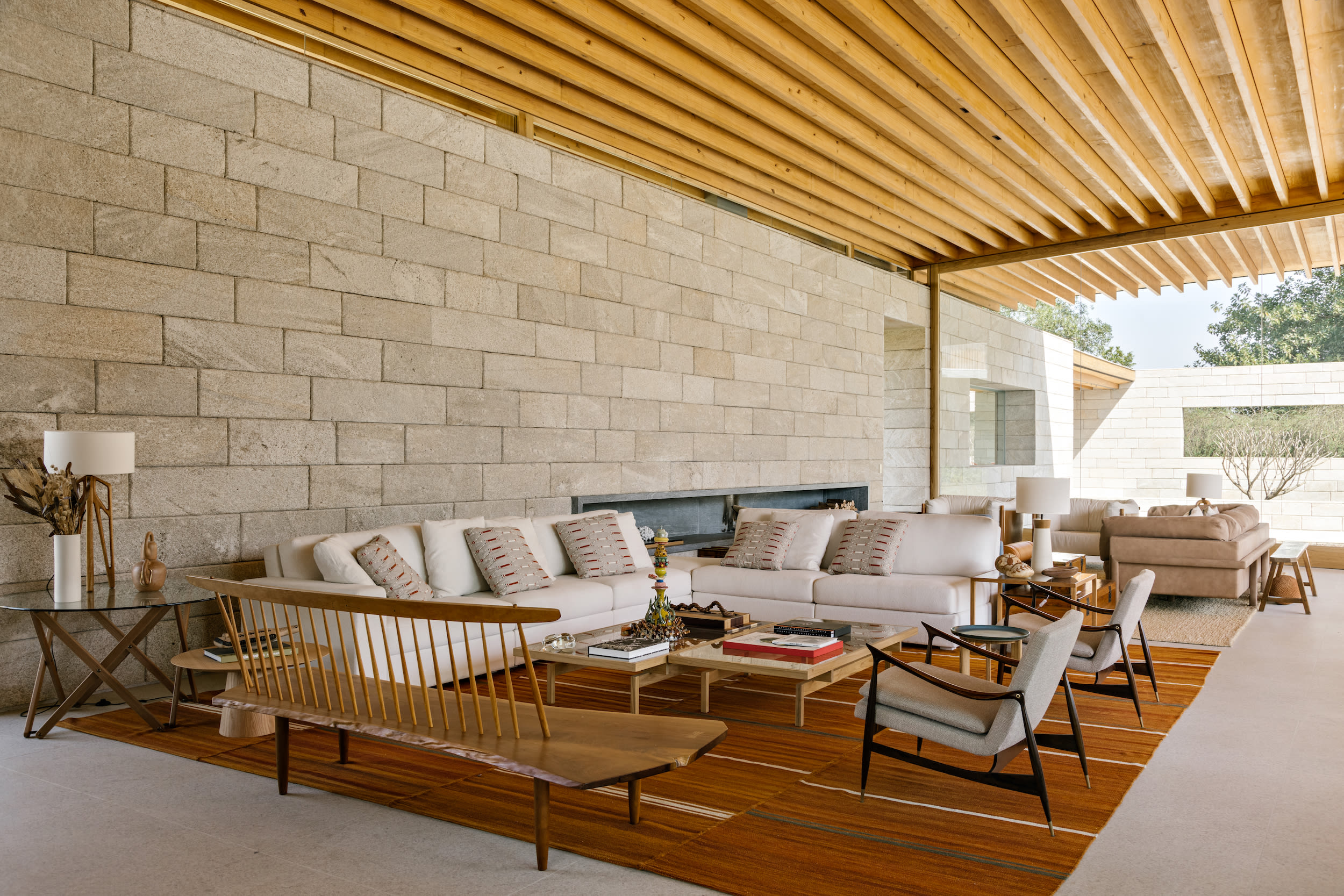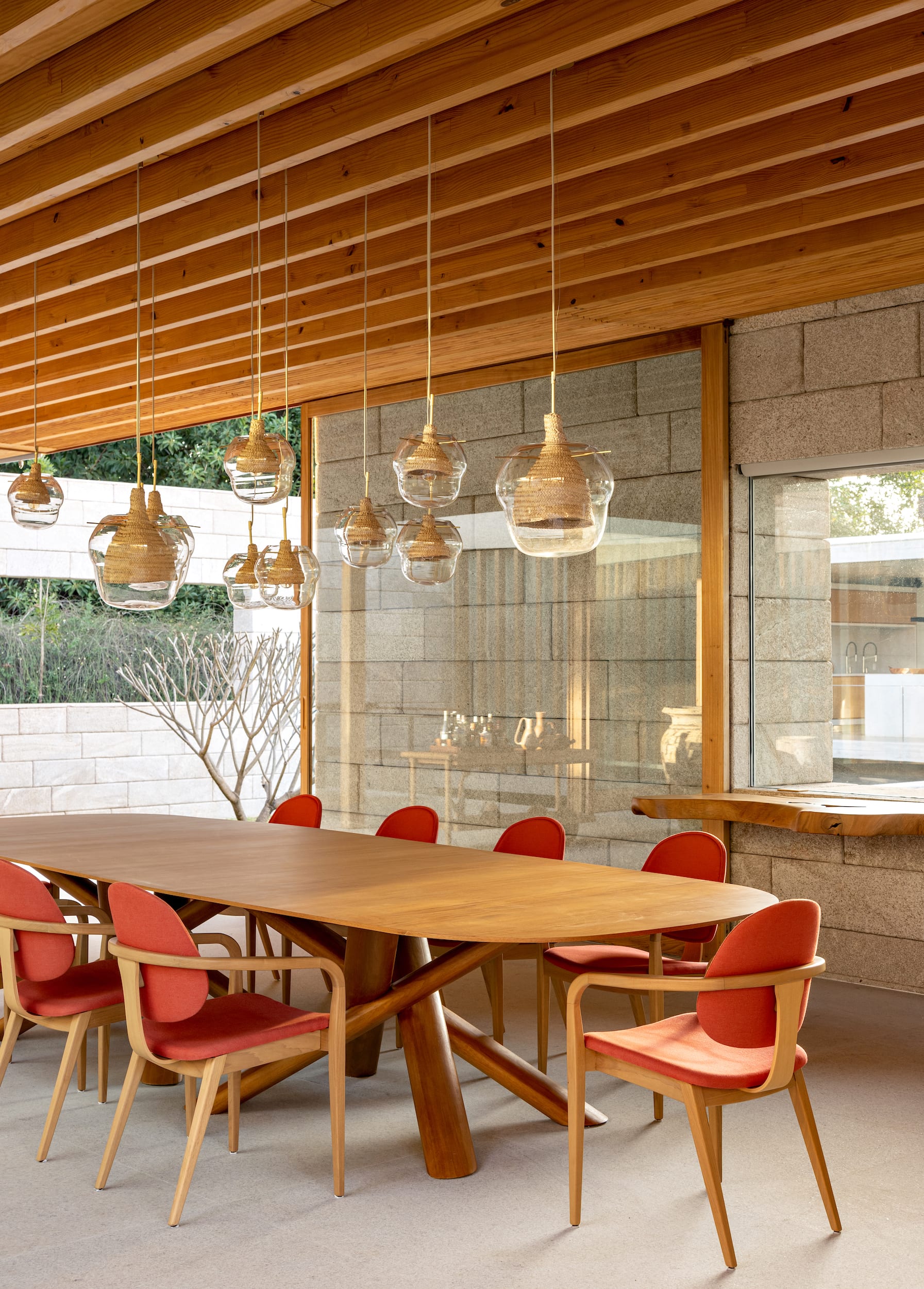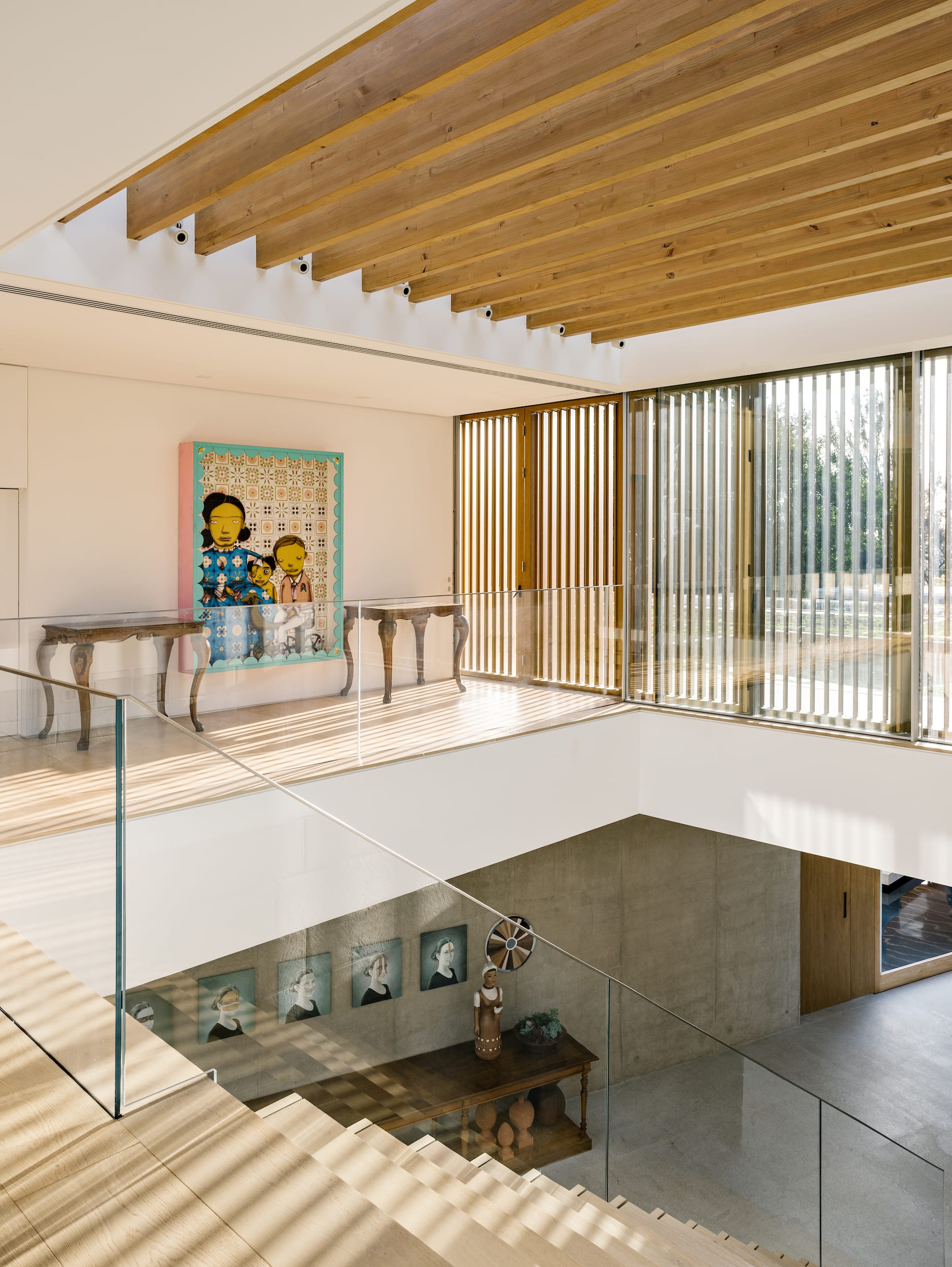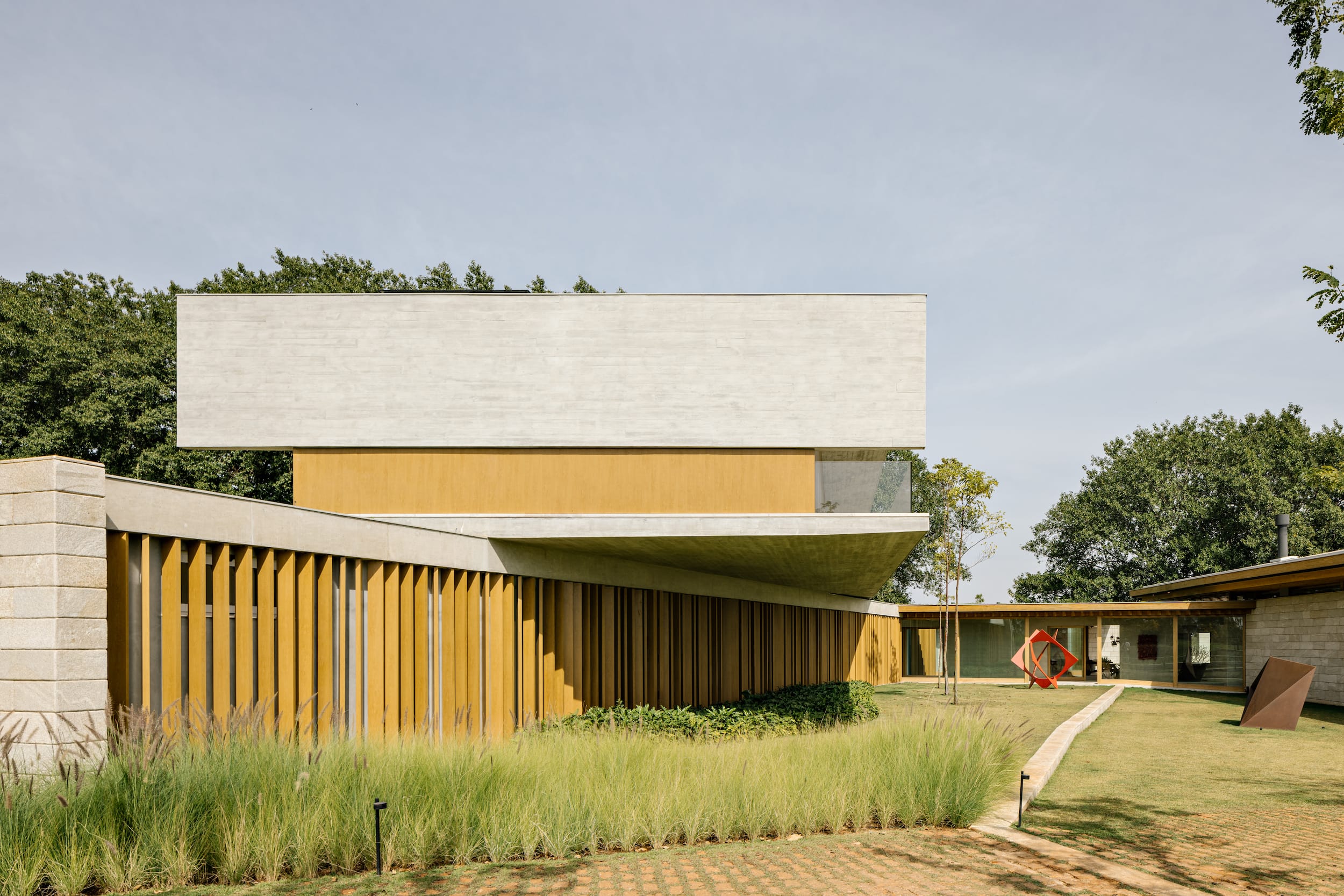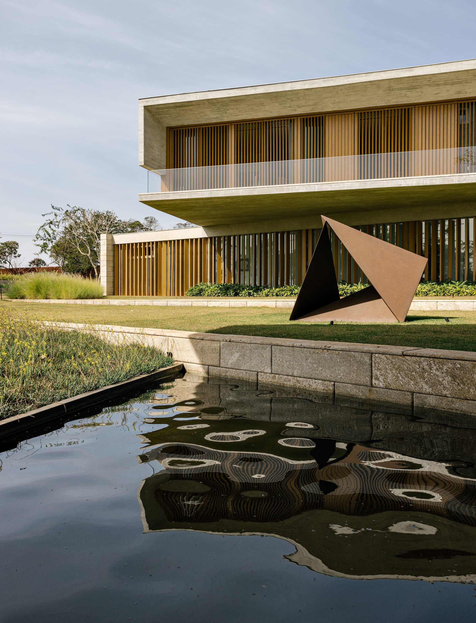The continuity between the internal and external spaces, characterised by the existence of several planes that organise the object and the landscape, reinforces the existence of patios of different sizes, where large sculptures demonstrate the owners’ appreciation for Brazilian art – also seen inside the house.