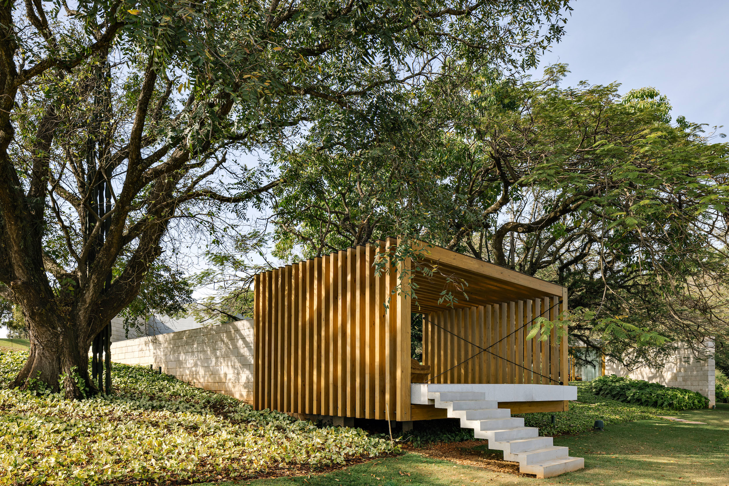 Adult and sculptural trees fill the central portion of this 14,000m² plot of land in the Fazenda Boa Vista development, in the countryside of São Paulo.