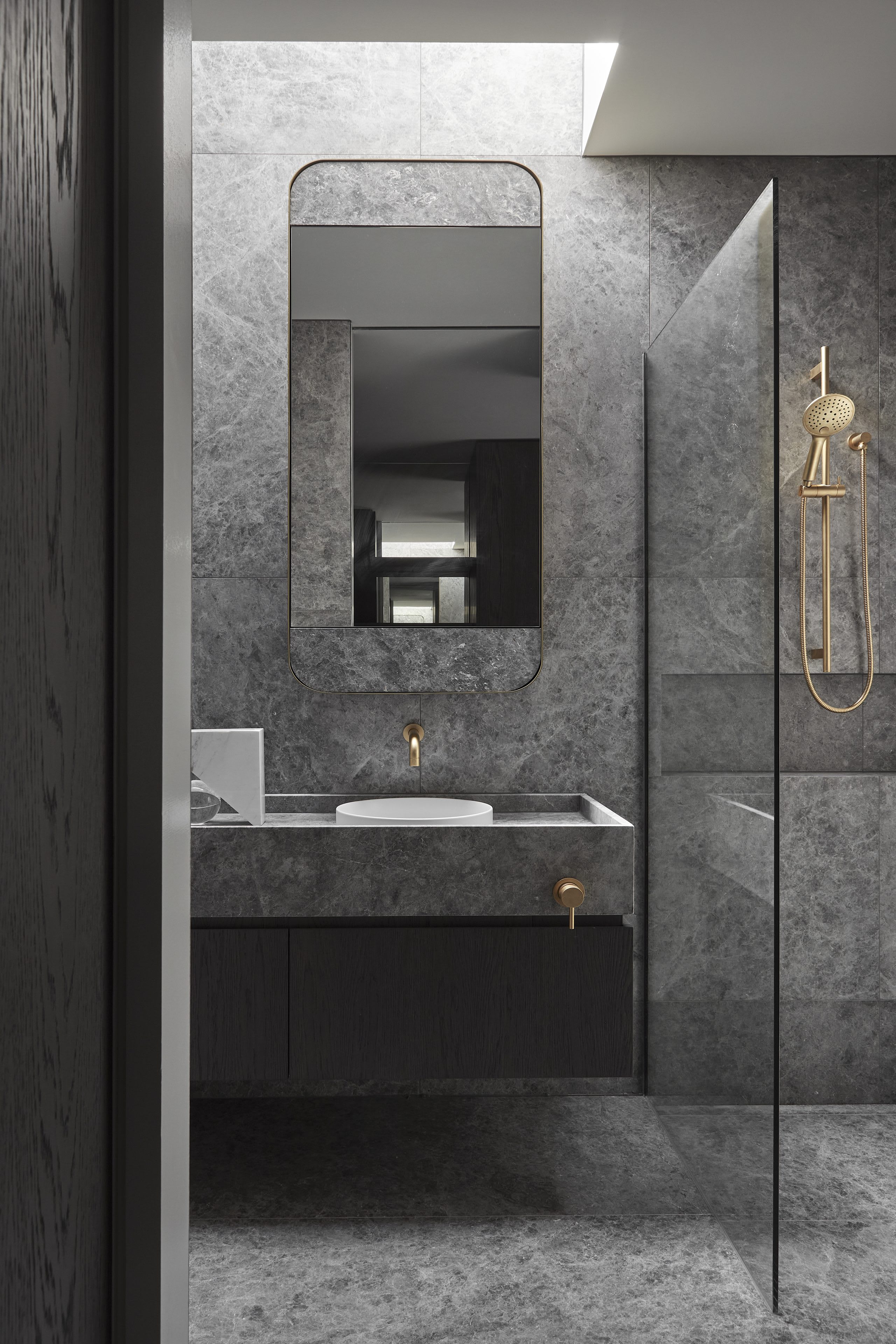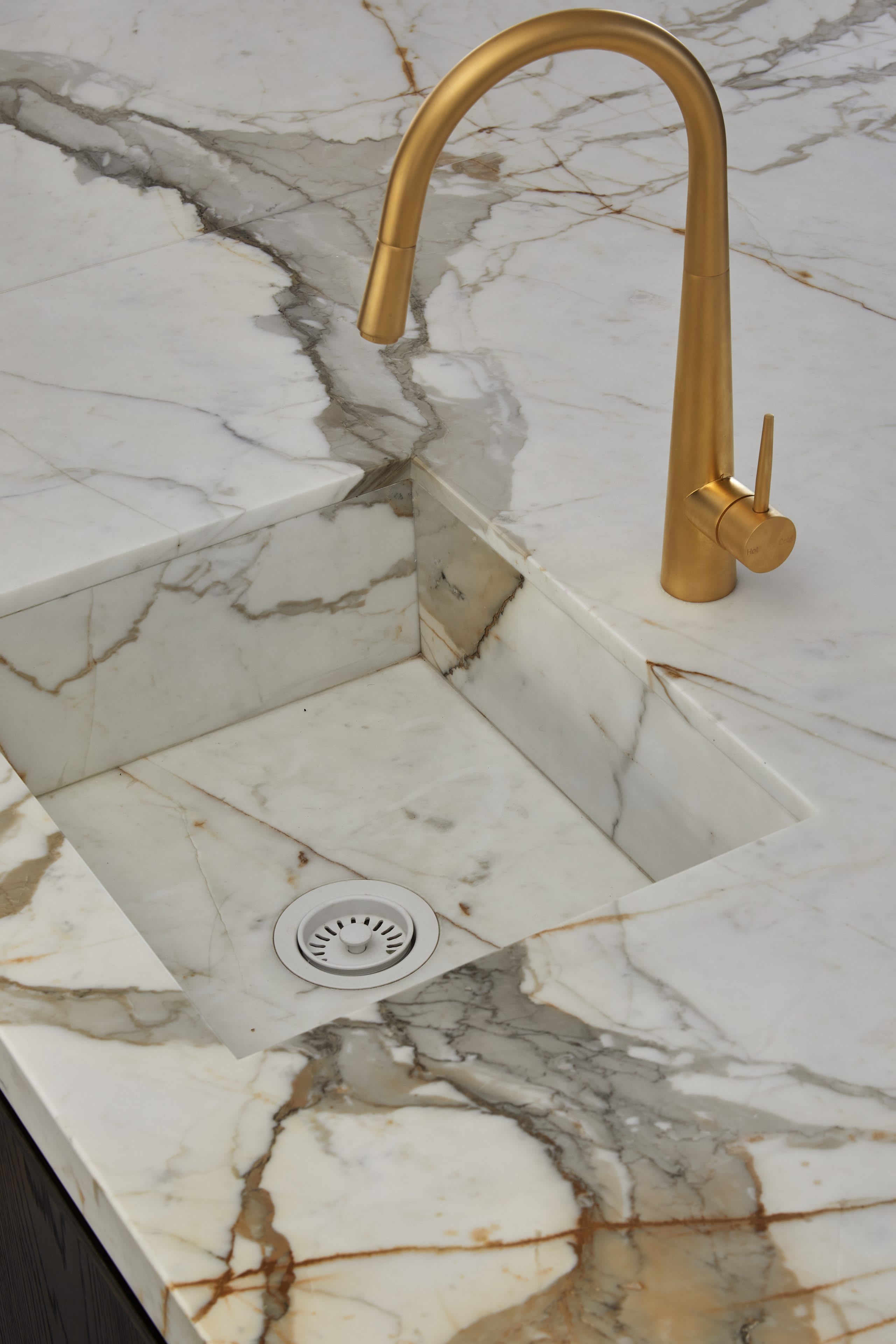 Marble benchtopsGrey Tundra, honed, from Nexus Stone | TapwareBrushed Gold |