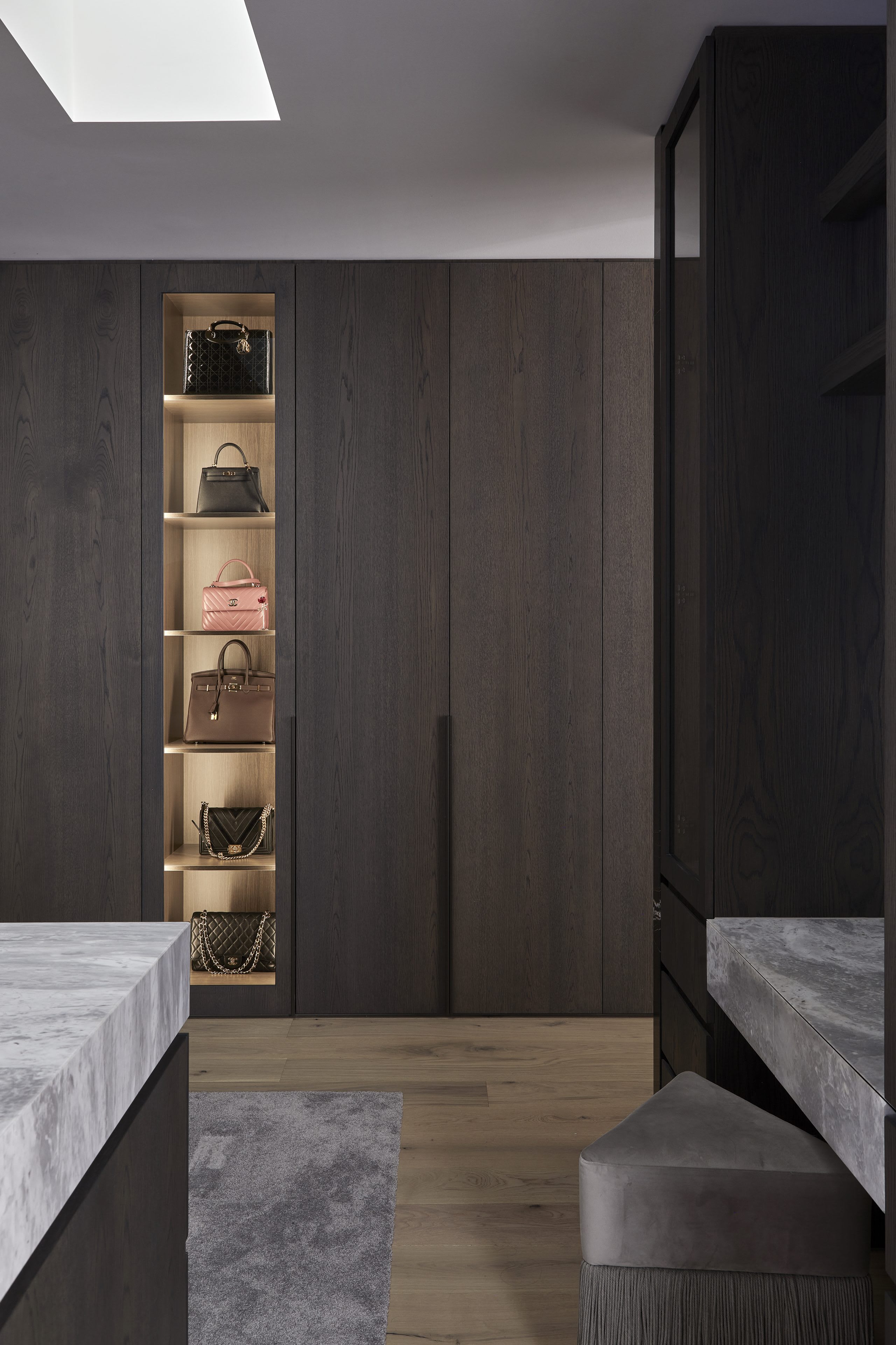 Other aspects, such as treating fixed joinery elements as refined furniture elements, evoke a refined sophistication.