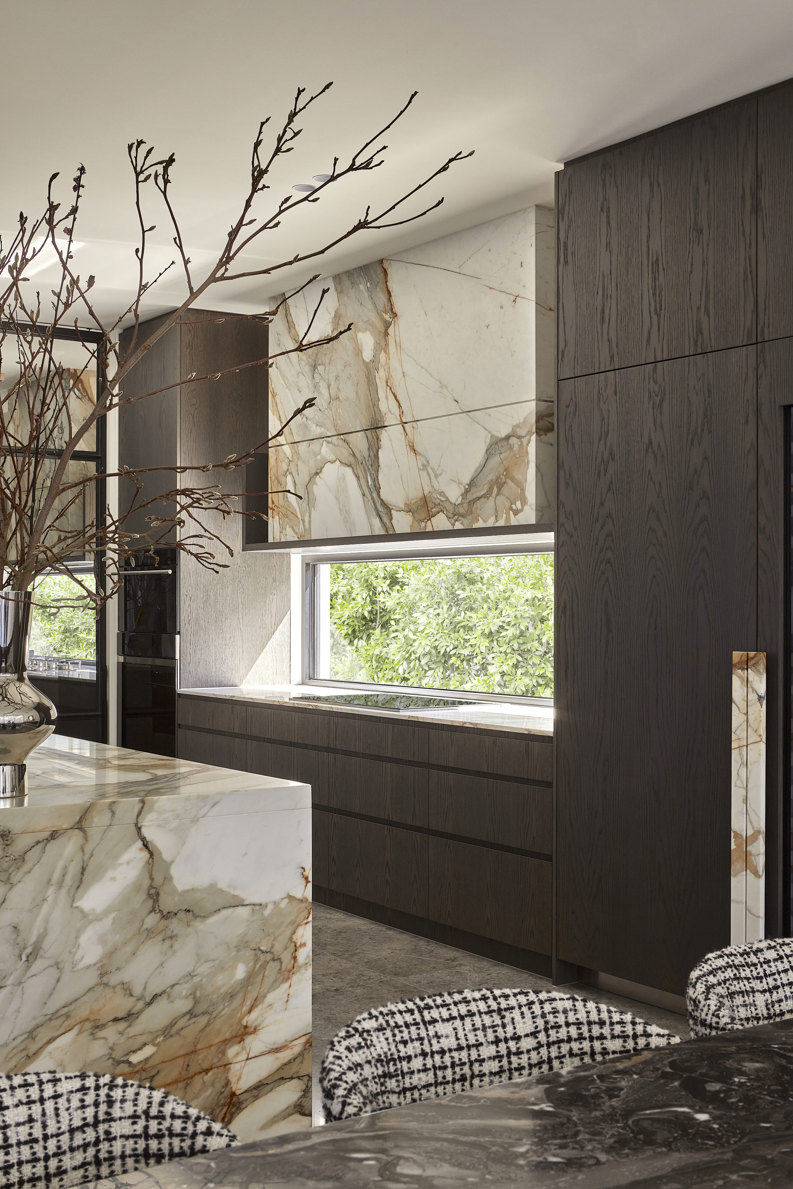 Kitchen designerJack Fugaro | Kitchen stone-look elementsCalacatta Oro porcelain |