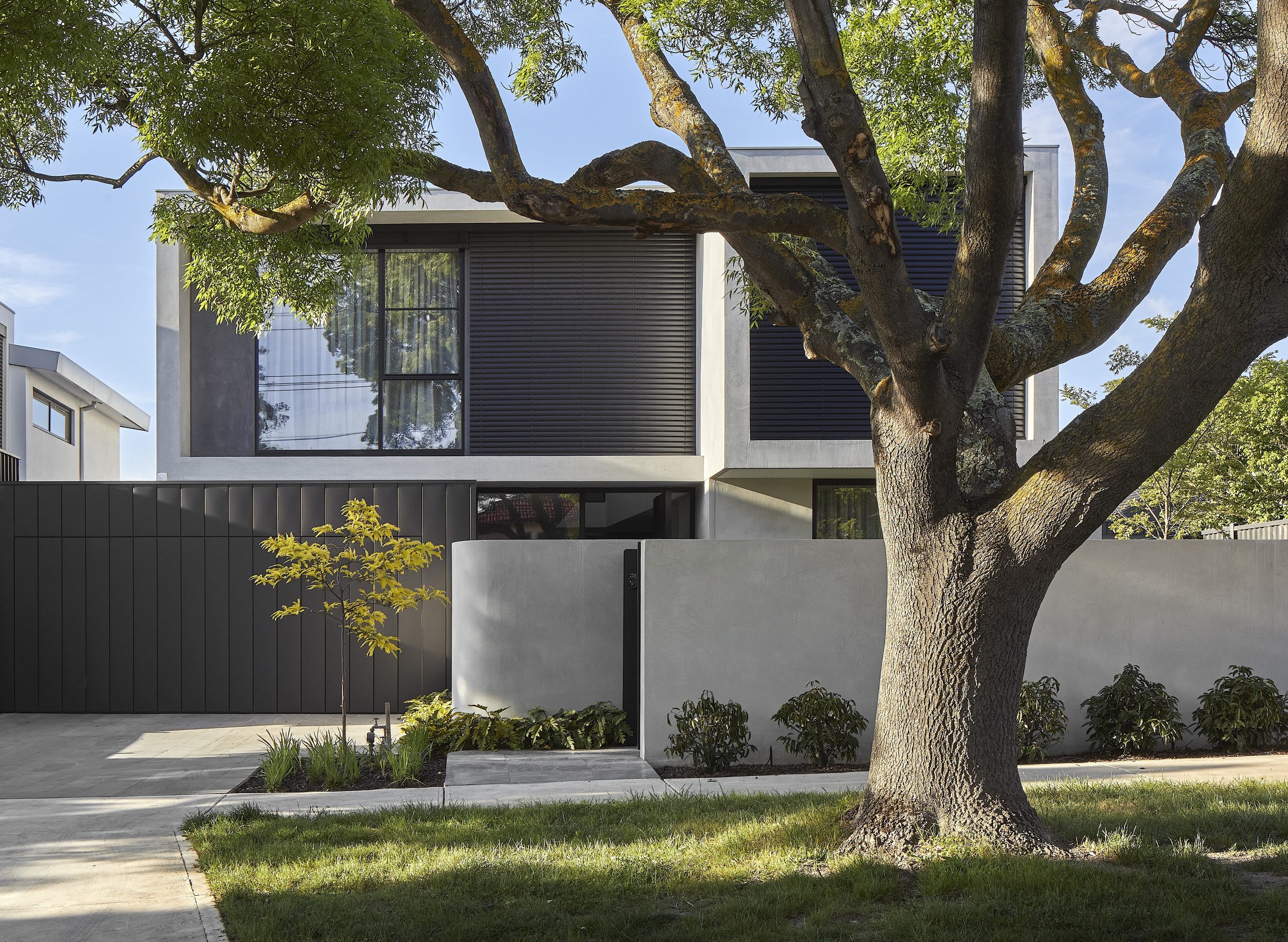 Nestled amongst traditional residential homes with a solid street presence, this home delicately hovers over into the treelined landscape giving a sense of calm & lightness.
