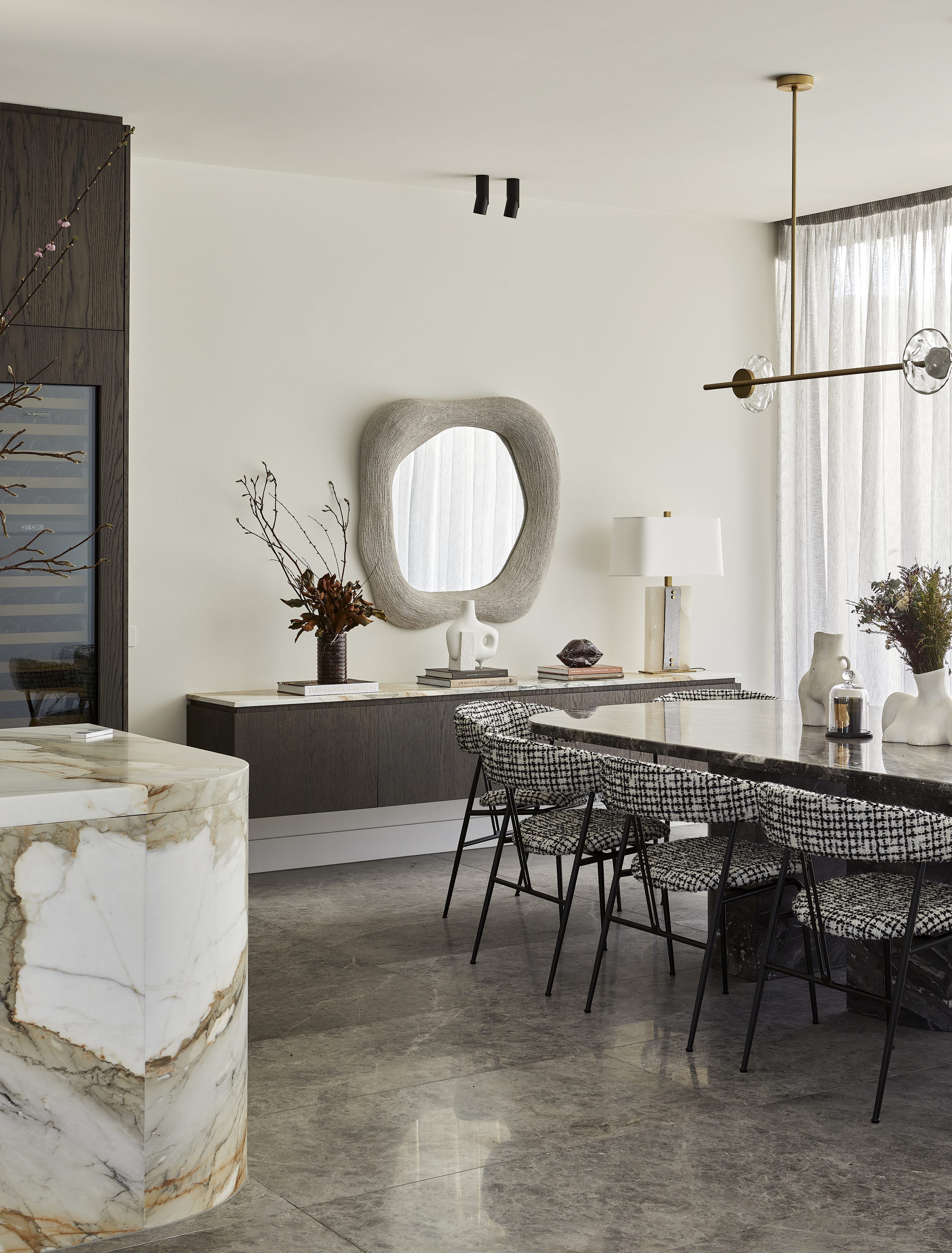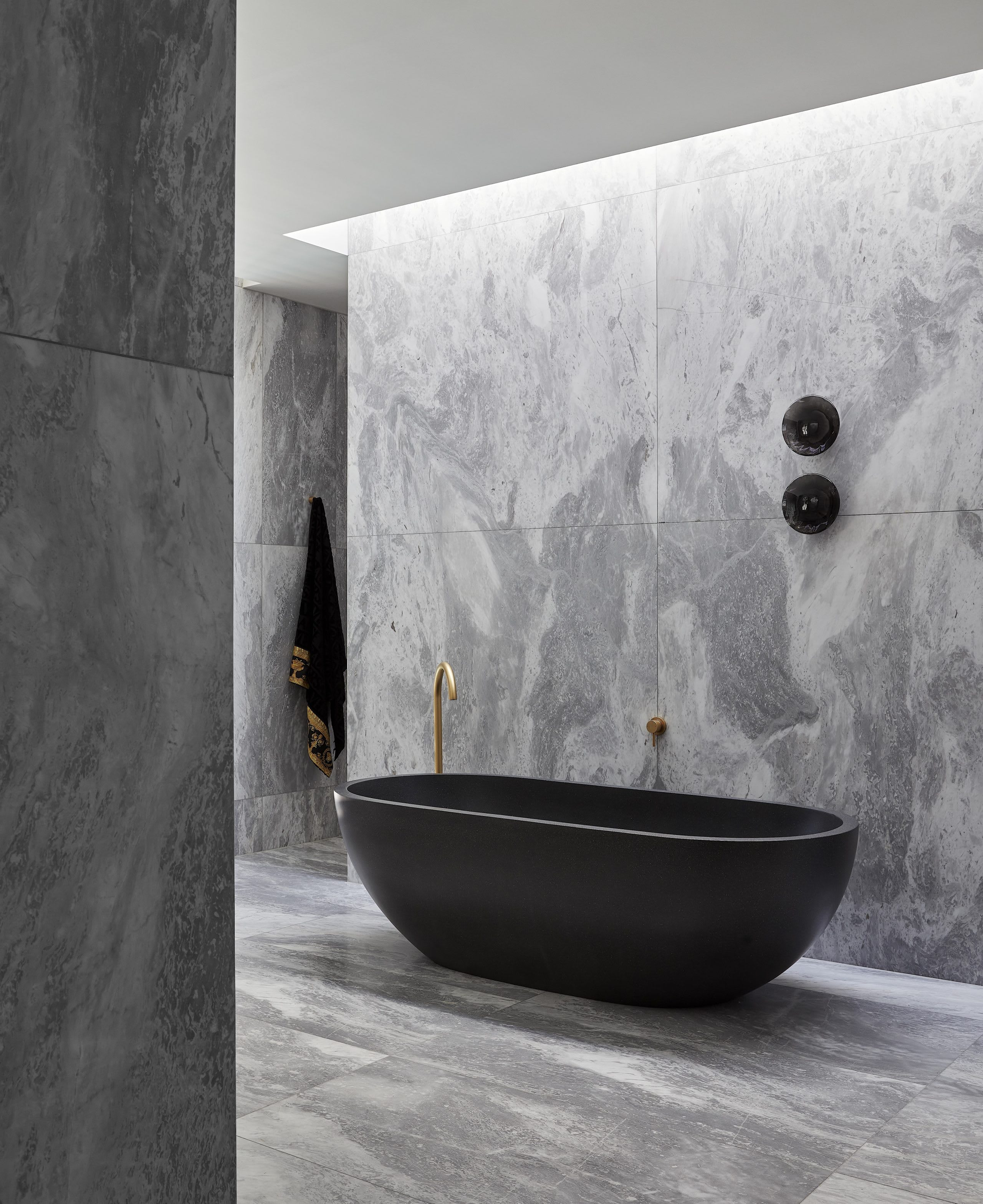A pared back sense of calmness was key, with a rich material palette and strict direction from the owner to make a hero of the stonework and craftsmanship throughout the home – referencing the family’s strong connection with the craft, with one member a master stonemason.