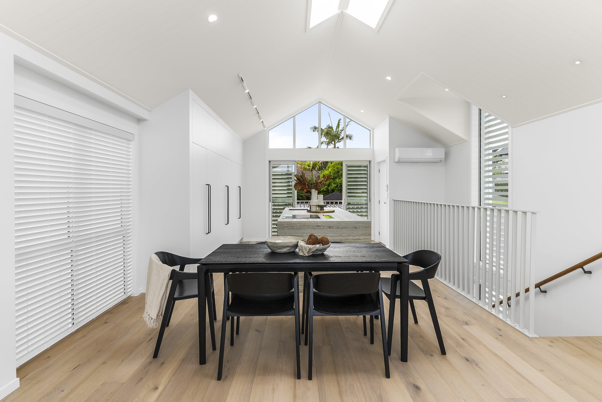 A continuous flow of Amarto Creamy White Oak extra matte timber flooring runs throughout, infusing the living spaces with warmth while complementing the crisp backdrop of Resene Alabaster walls.