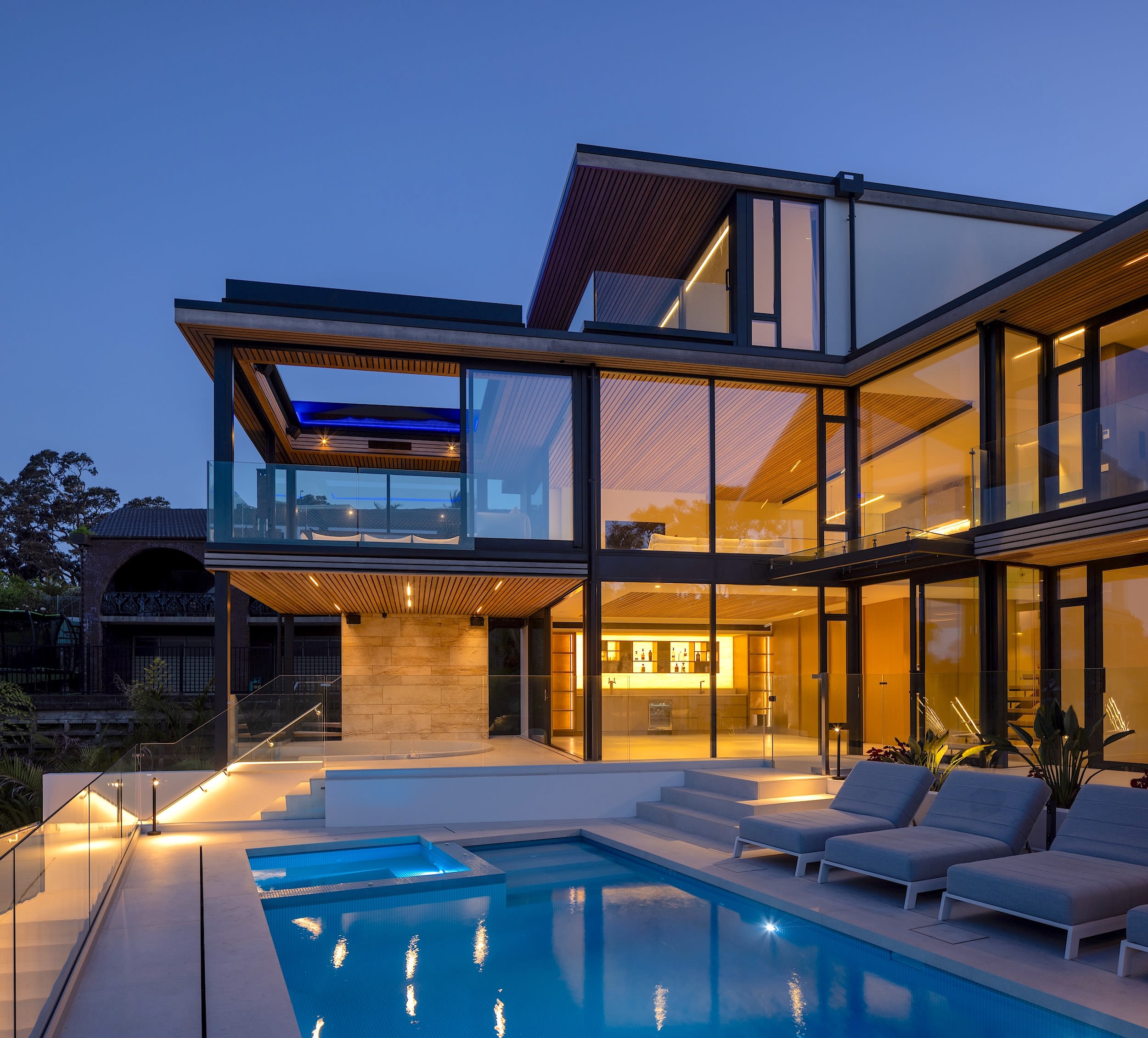 The brief was for a high quality four bedroom family home with a variety of indoor & outdoor living / entertainment spaces – together with a gym, a pool and guest accommodation separate from the family spaces.