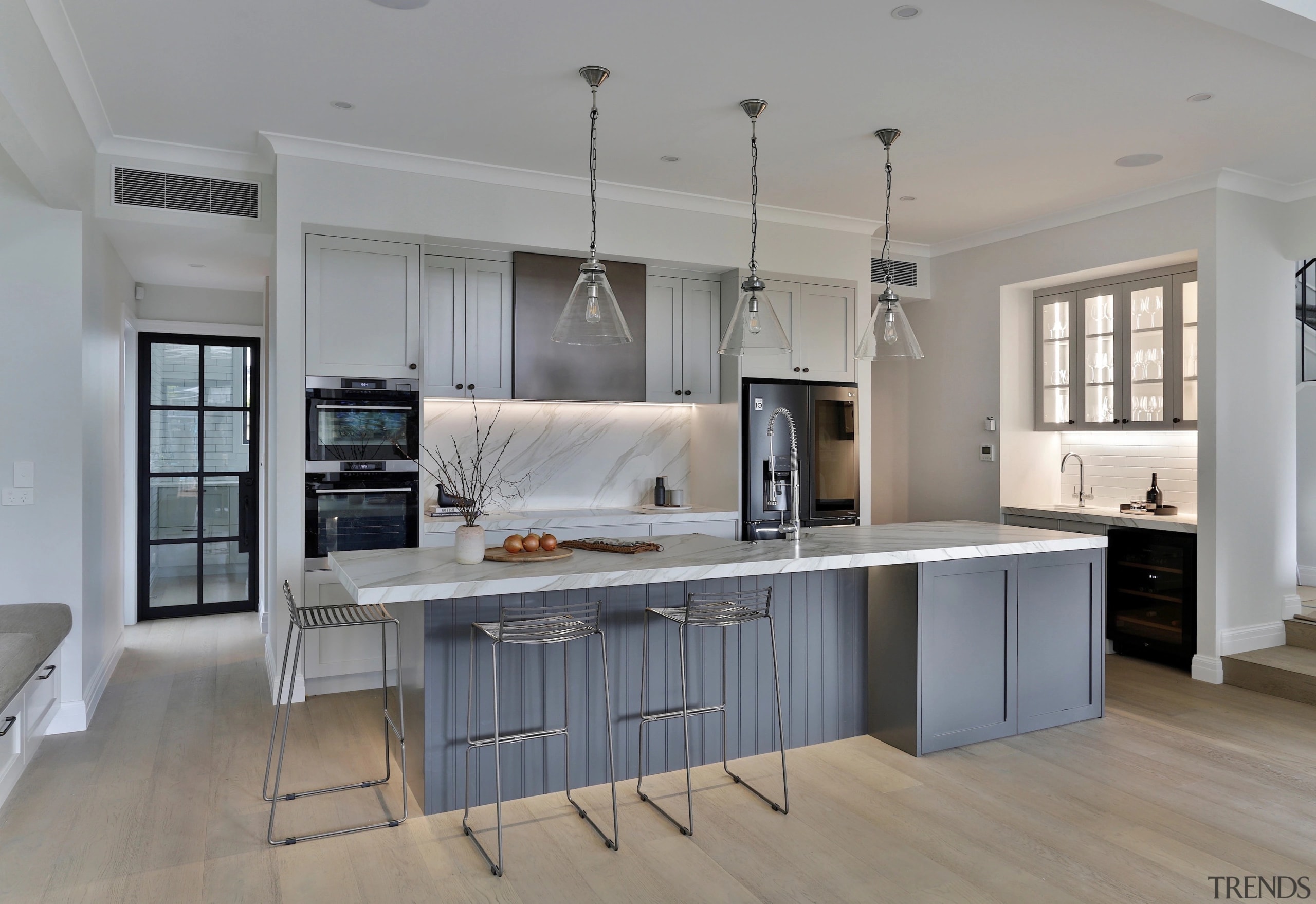 This kitchen and small walk-in scullery, plus bar, is in a new home in semi-rural Greenhithe.