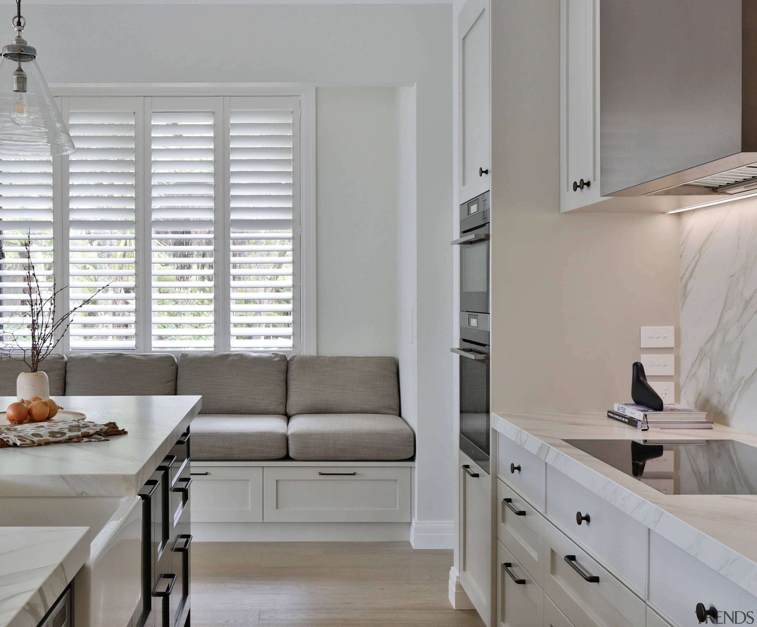 Soft neutral cupboard tones on the fronts were specified along with the addition of bronze accents on the handles and rangehood details.